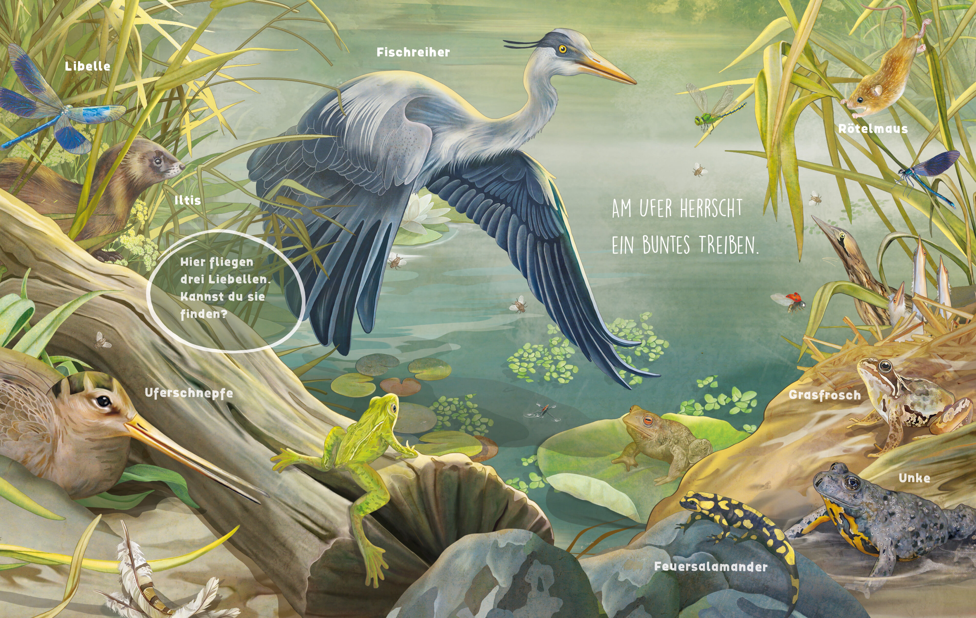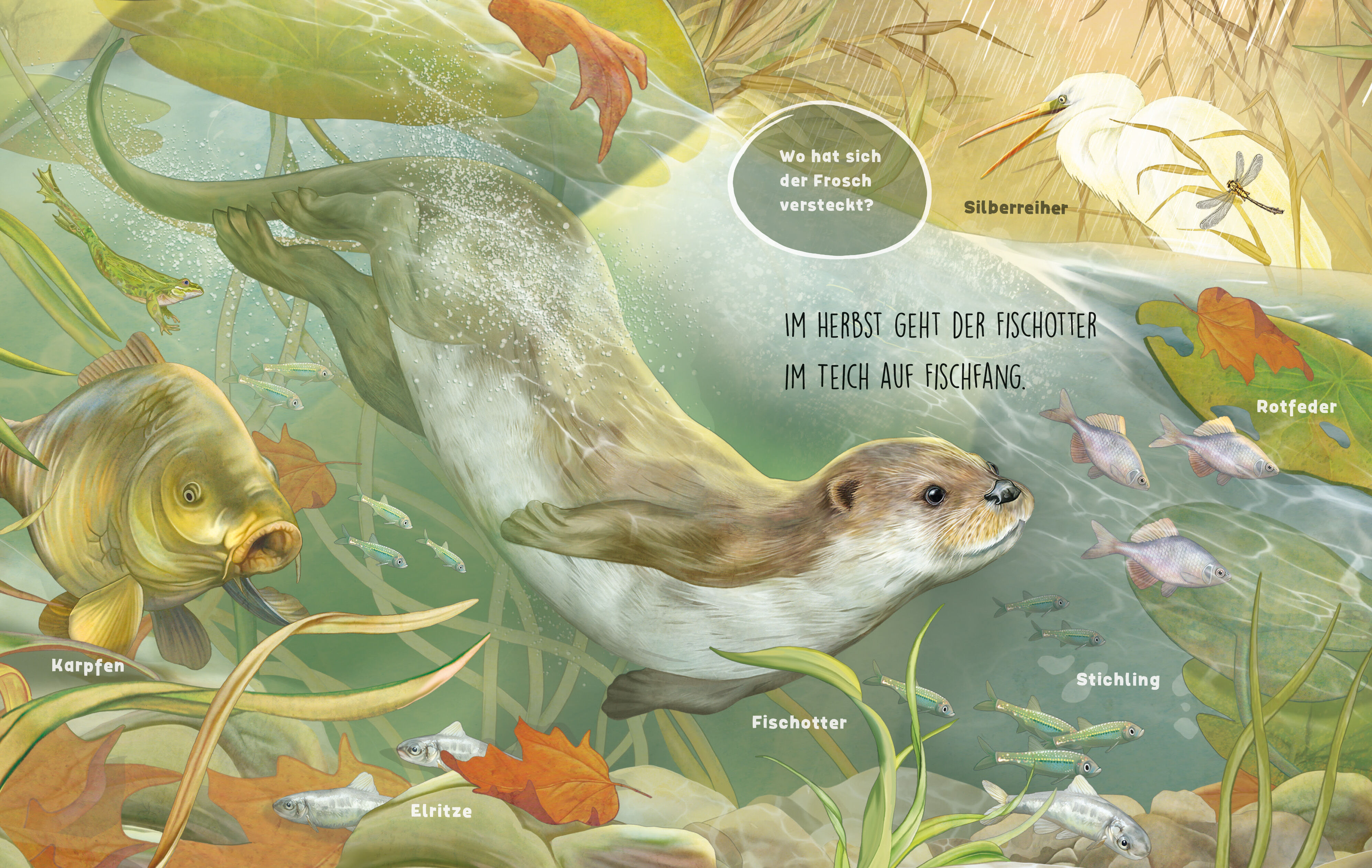 Ein erster Blick in die Natur und die erste Begegnung mit unseren Wildtieren: Der kleine Frosch zeigt uns die lebendige Vielfalt an seinem Teich. Wir treffen Karpfen und Kröte, Schwan und Libelle Wie leben die Tiere, und wie sehen sie aus? Jana Walczyks Bilde...
