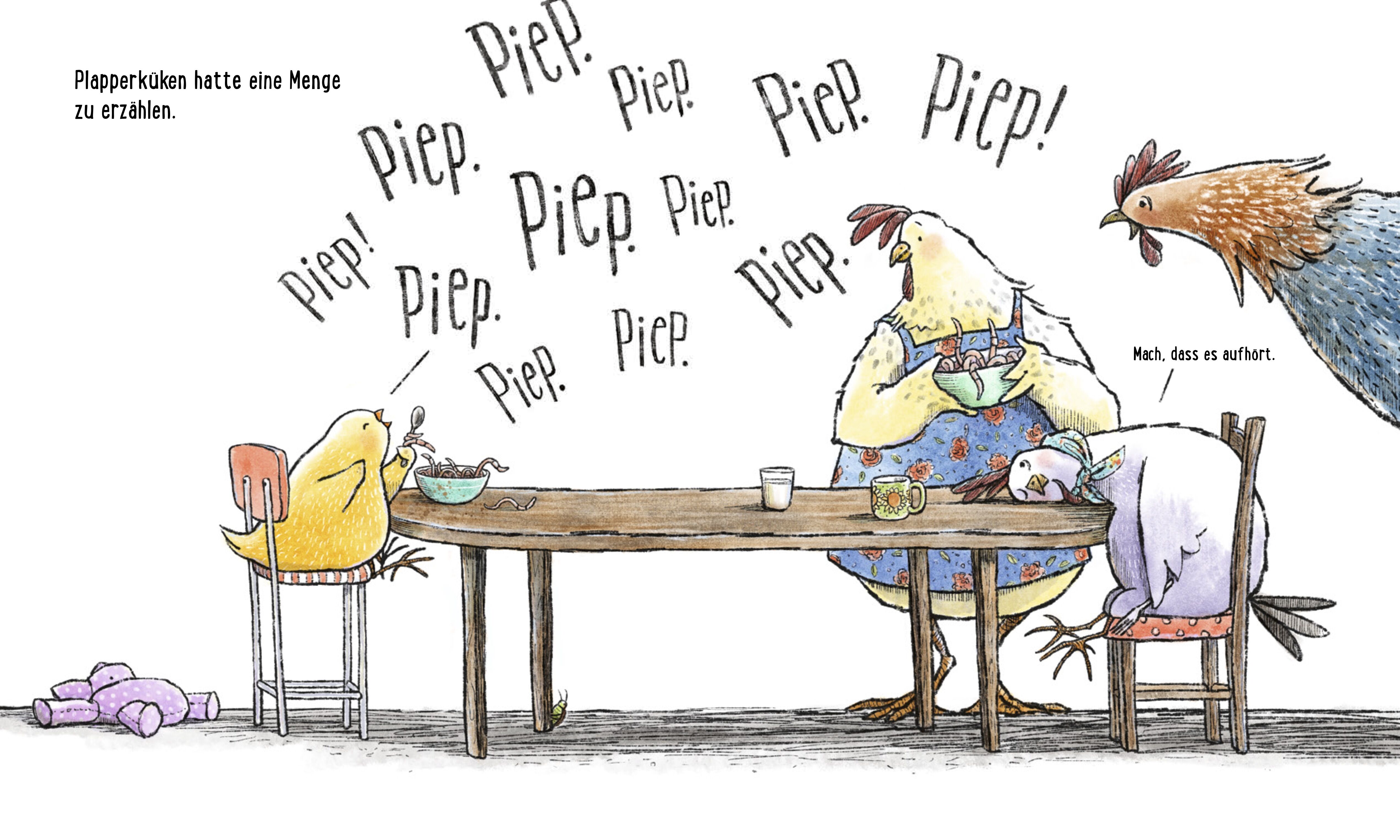 Leichtfüßiger Frühlingsspaß! Genial zum Vorlesen Küken hat wahnsinnig viel zu erzählen und plappert pausenlos. Aber niemand hört ihm zu! Mama ist im Garten beschäftigt, Papa bei der Arbeit und die große Schwester steckt lieber die Nase in ein Buch. Doch dann ...