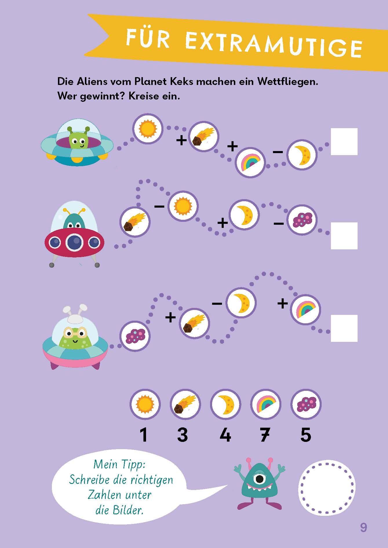 Wer mit einer Rakete ins All reisen möchte, muss mutig sein. Aber auch der Spaß an Zahlen und verzwickten Aufgaben gehören dazu. Mit diesem Rätselbuch können junge Hobbyastronautinnen schon mal üben. Vom sicheren Zählen, über Plus- und Minusrechnen im Zahlenr...