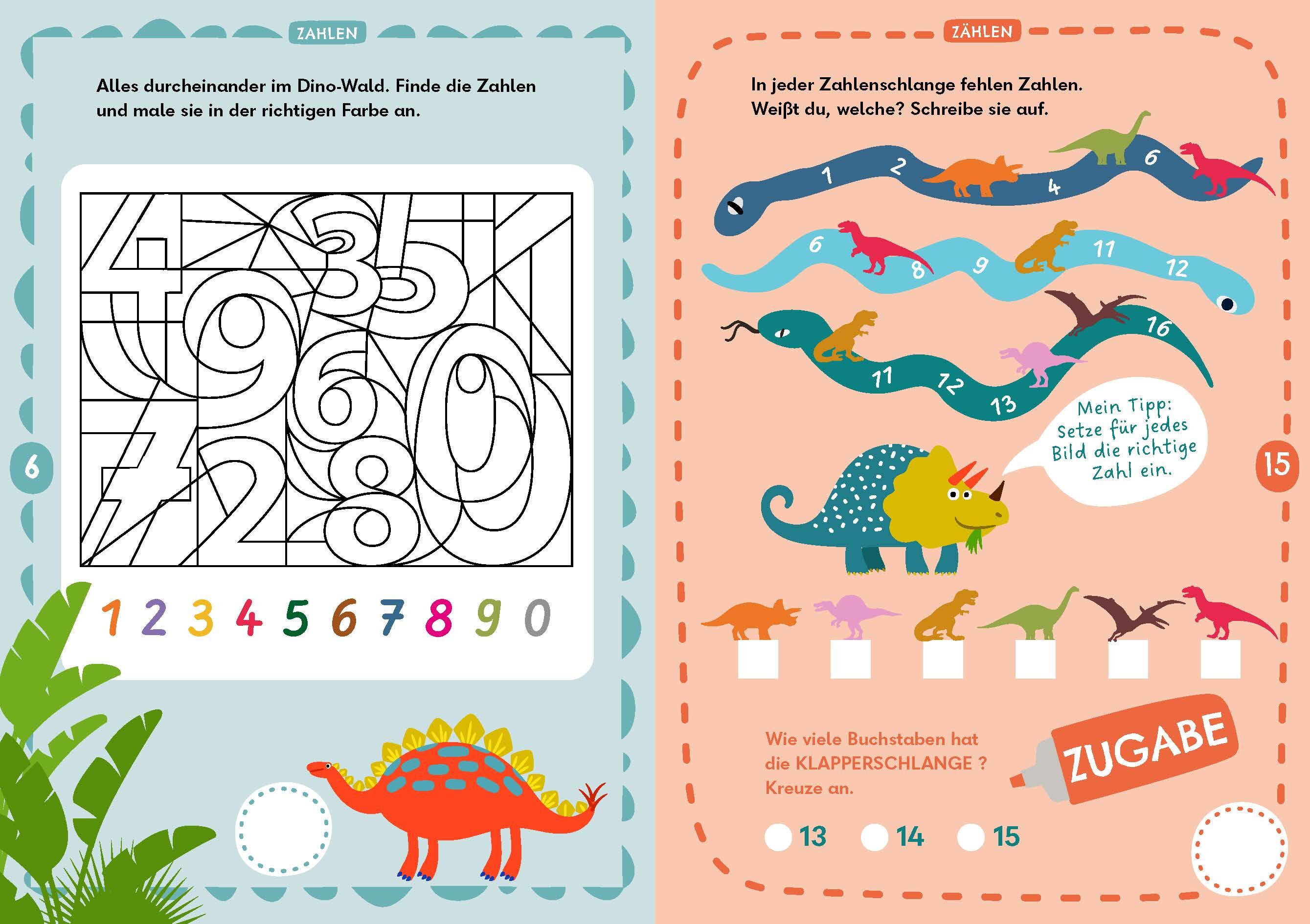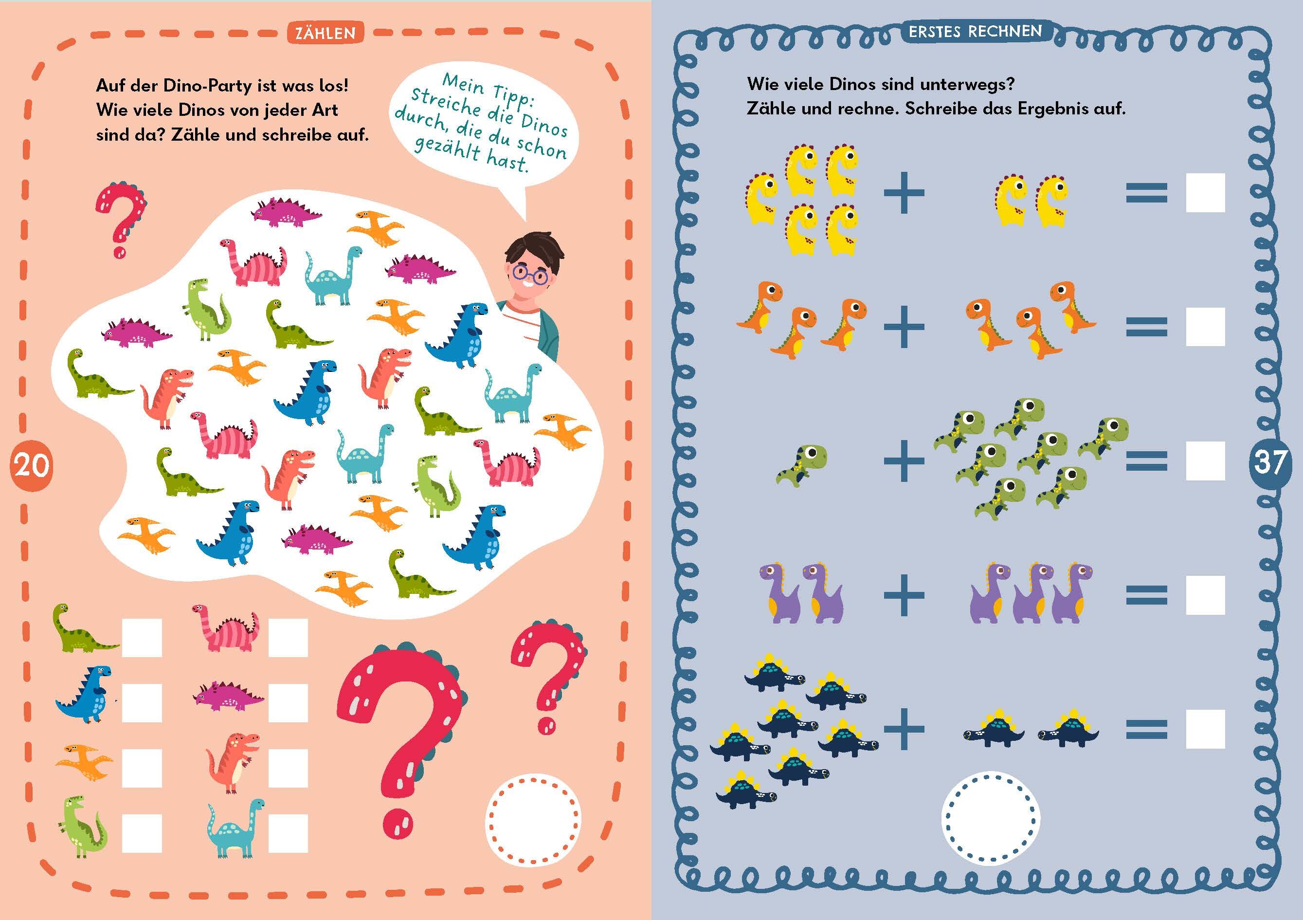 Die Welt der Zahlen kennenlernen ist aufregend - erst recht, wenn schrecklich-schöne Dinosaurier die Kinder dabei begleiten. Ein bisschen Mut gehört schon auch dazu, wenn man dem T-Rex beim Rückwärtszählen helfen soll oder ausrechnen will, wie viele Eier der ...