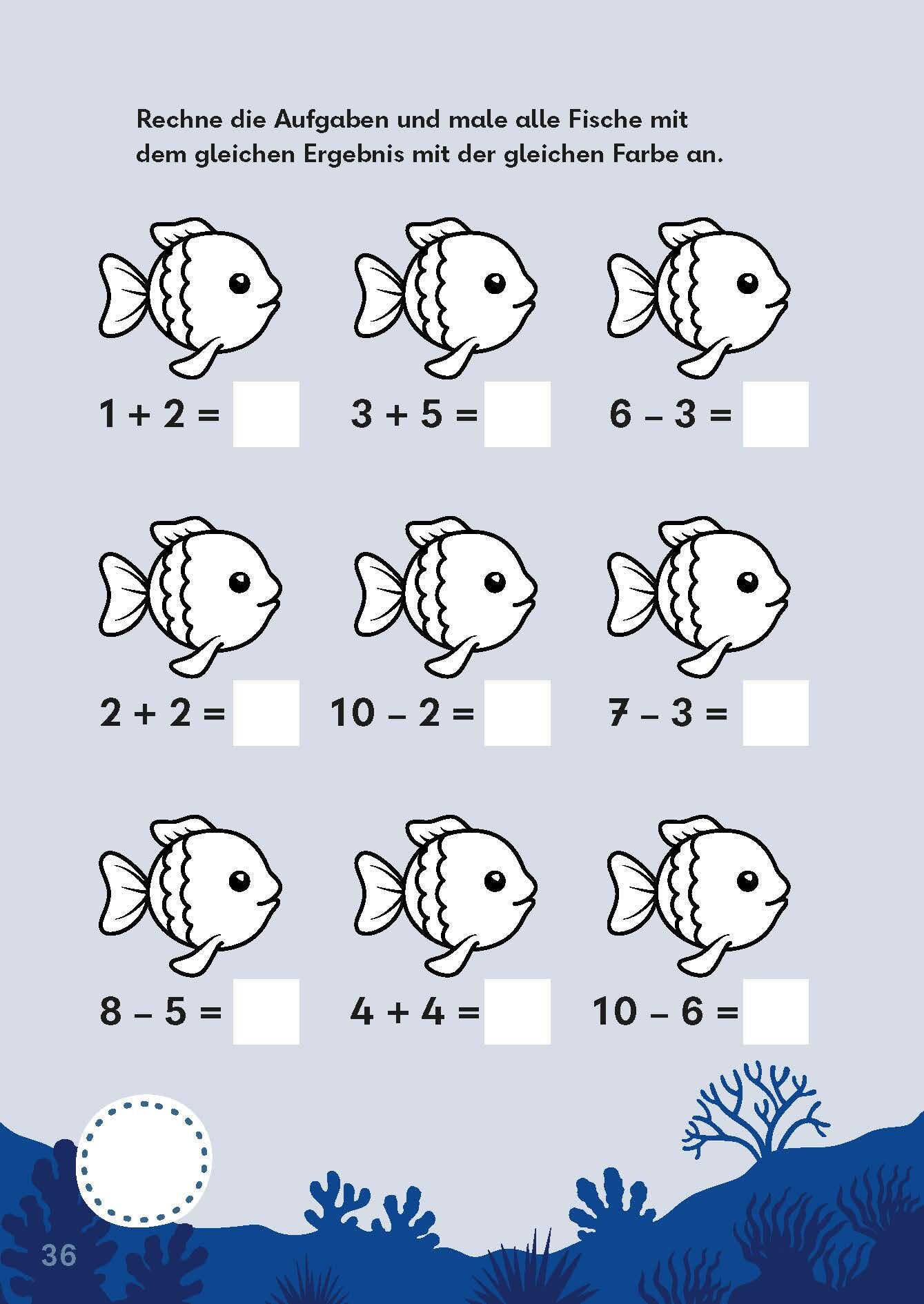 Mit diesem Mathe-Rätselbuch tauchen Kinder in die fabelhafte Welt der Zahlen ein und zugleich in das aufregende Leben unter Wasser. Hier begegnen sie hungrigen Haien, schillernden Doktorfischen und gigantischen Walen. Ganz nebenbei üben sie spielerisch das Zä...