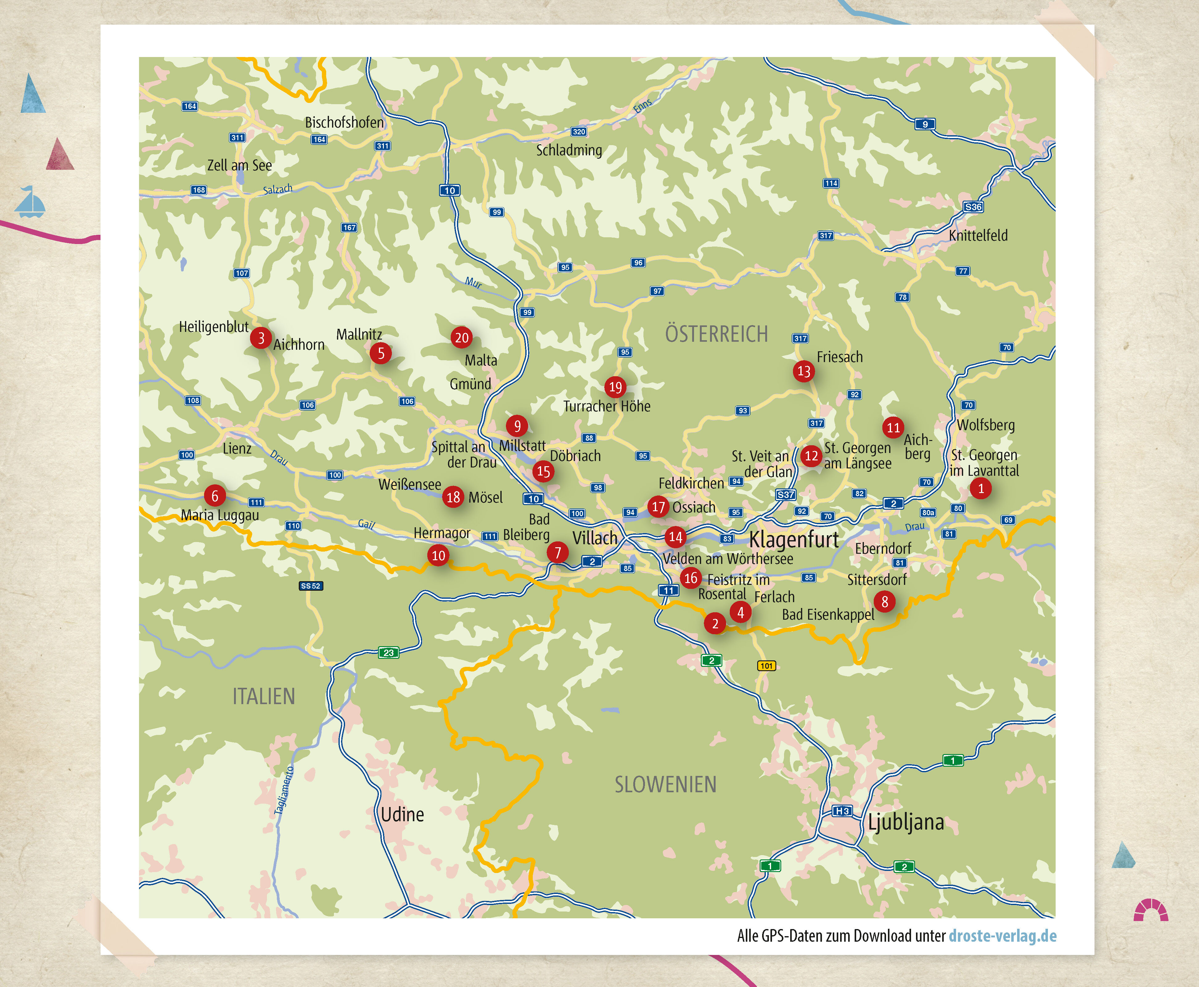 Türkisblaue Seen, einzigartige Hügellandschaften und blühende Almwiesen: Sie alle lassen das Wanderherz höherschlagen. Im Süden Kärntens zeigt sich unberührte Natur, in der Mitte thronen Burgruinen und der berühmte Wörthersee und im Nordwesten ruft der Nationa...