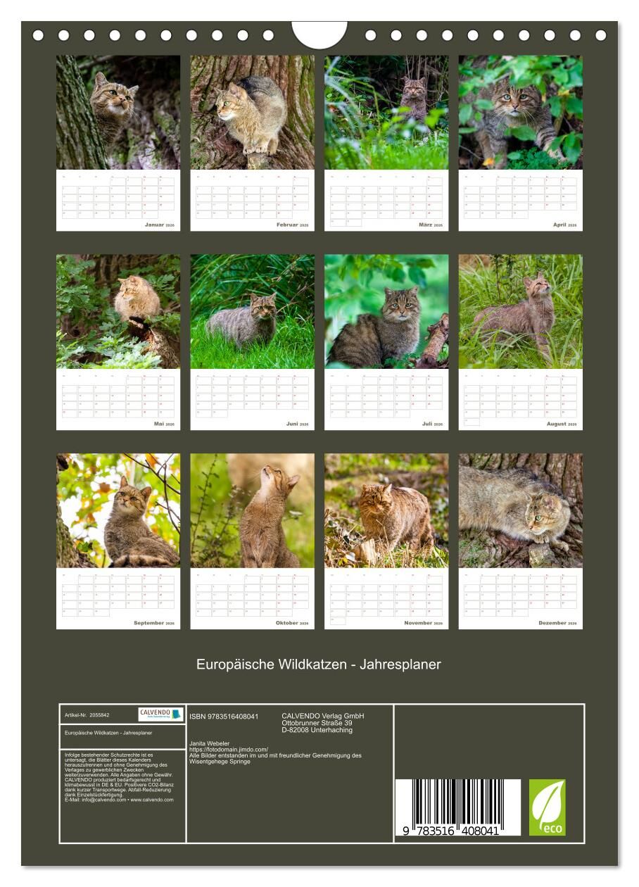 Europäische Wildkatzen - Jahresplaner (Wandkalender 2026 DIN A4 hoch), CALVENDO Monatskalender