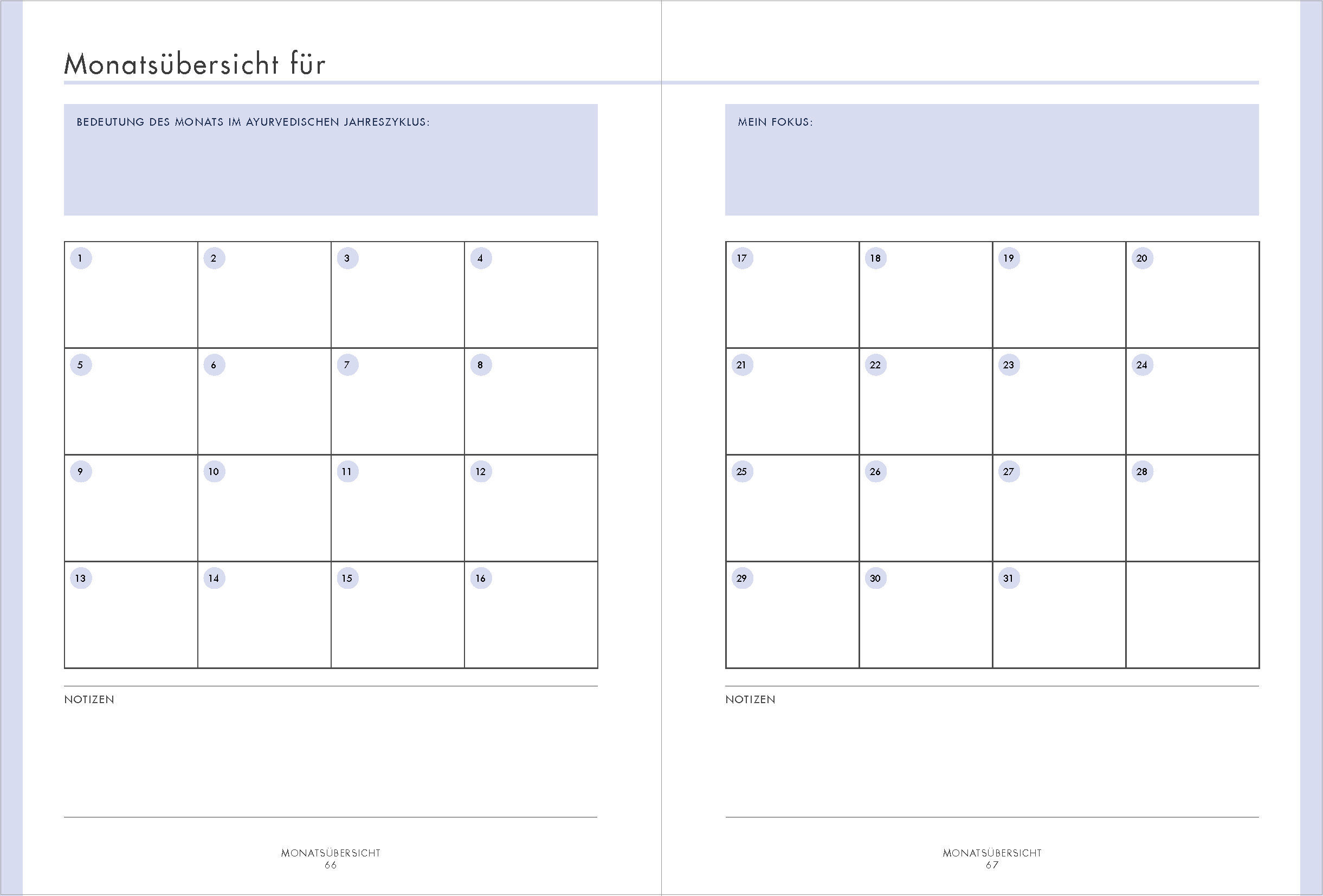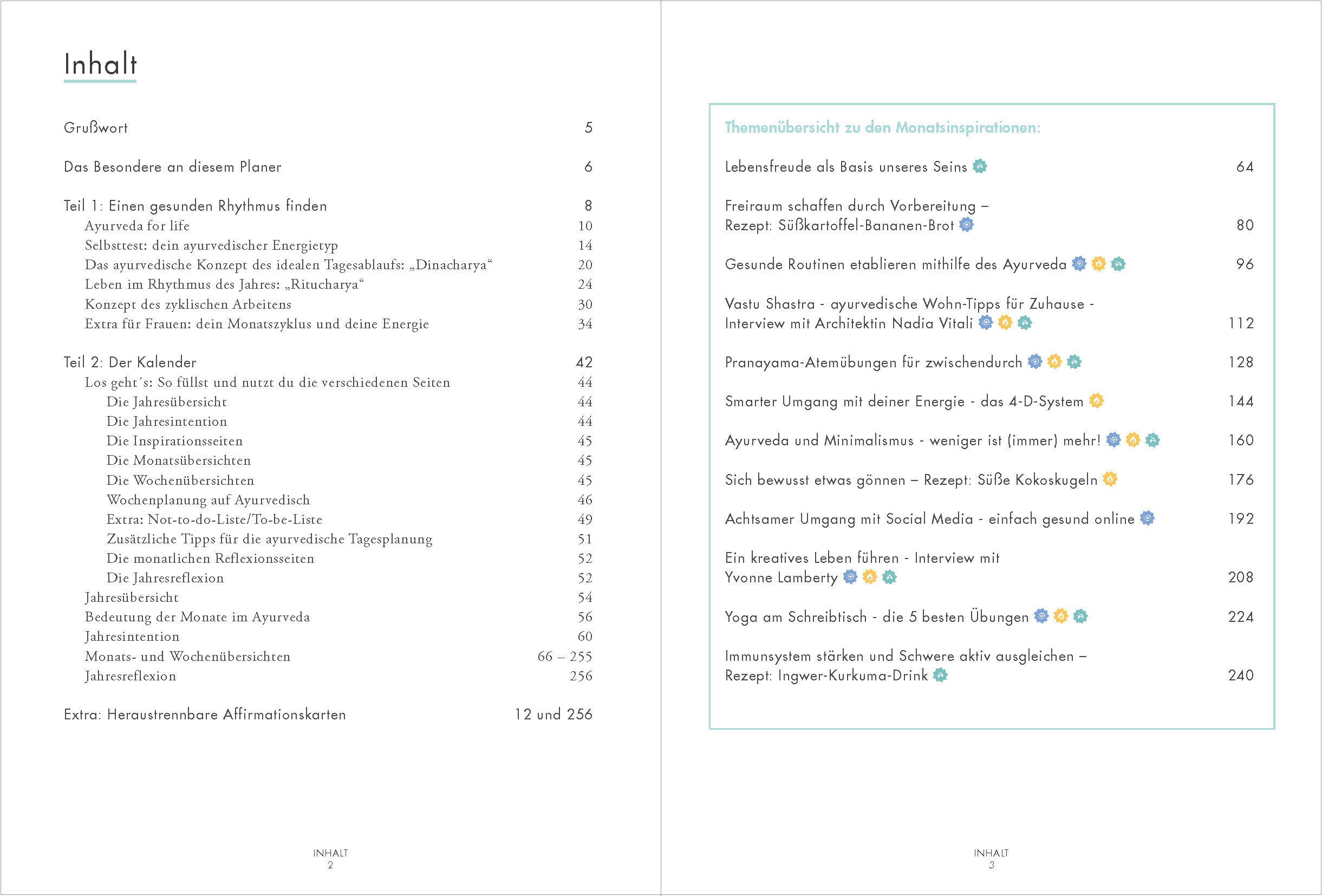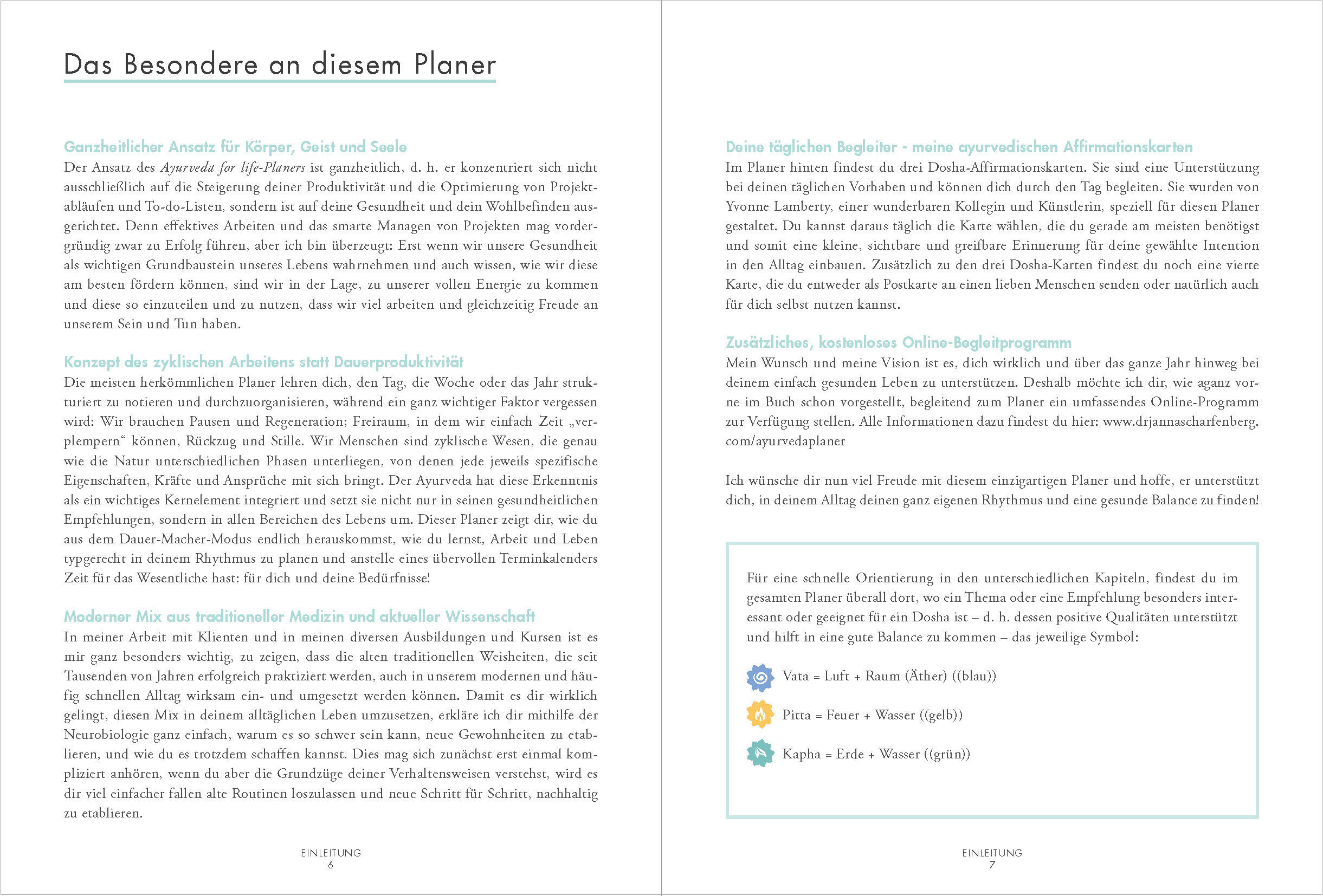 Mein Ayurveda-Planer - einfach gesund durch das Jahr Dieser liebevoll gestaltete Planer ist mehr als ein klassischer Jahreskalender: Eine kompakte Einführung in den ayurvedischen Ansatz der typgerechten Arbeits- und Lebensweise sowie viele unterstützende Tipps...