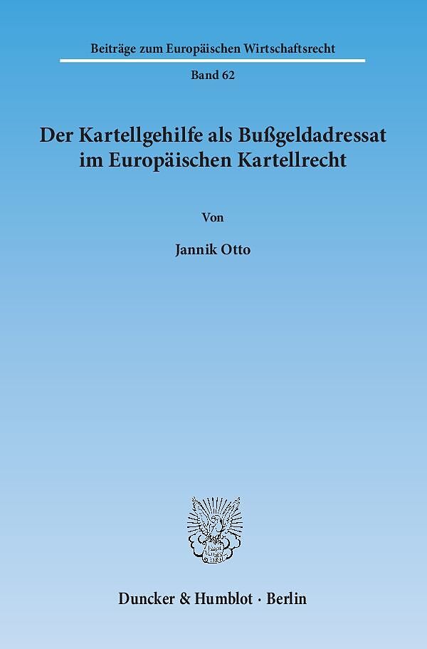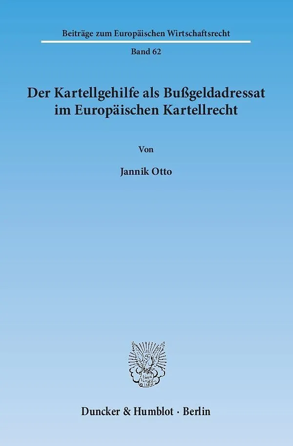 Kartellgehilfen sind Unternehmen, die weder an der Kartellabsprache beteiligt sind, noch auf dem kartellierten Markt auftreten, ein Kartell aber anderweitig unterstützen. Die vorliegende Arbeit untersucht ihre Bußgeldverantwortlichkeit nach europäischem Recht ...