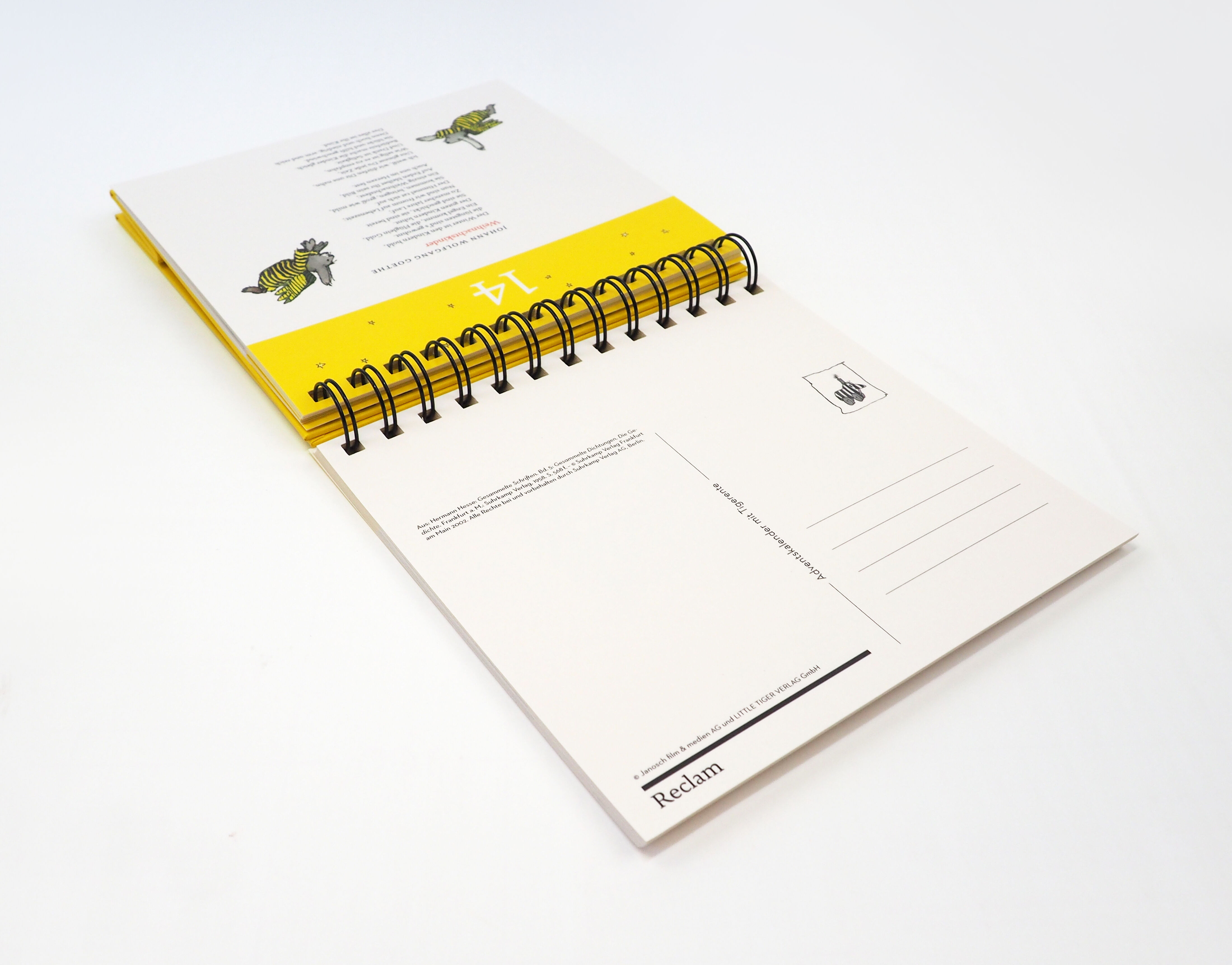 Ein besonderer Adventskalender für Erwachsene: Auf 24 heraustrennbaren Postkarten findet sich Janoschs beliebte Tigerente neben Gedichten namhafter Autor:innen wie Johann Wolfgang Goethe, Hermann Hesse oder Rose Ausländer. Ein schönes Ritual für den Advent: Jeden Tag eine Seite umklappen und sich von einem klassischen Gedicht und einer liebevollen Janosch-Illustration überraschen lassen. Ein stilvoller Begleiter durch die Adventszeit, der bei Janosch-Fans und Literaturliebhaber:innen gleichermaßen für leuchtende Augen sorgt.