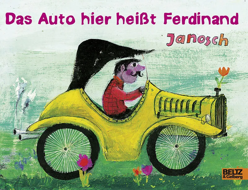 Ferdinand steht am Berg und kommt nicht weiter, da kommen sie alle und schieben, das Taxi, das Postauto, die Feuerwehr und der Traktor vom Bauern Nolte. "Doch oben fällt der Ferdinand hinunter übern Bergesrand. Und von der steilen Höh in einen tiefen See." Abe...