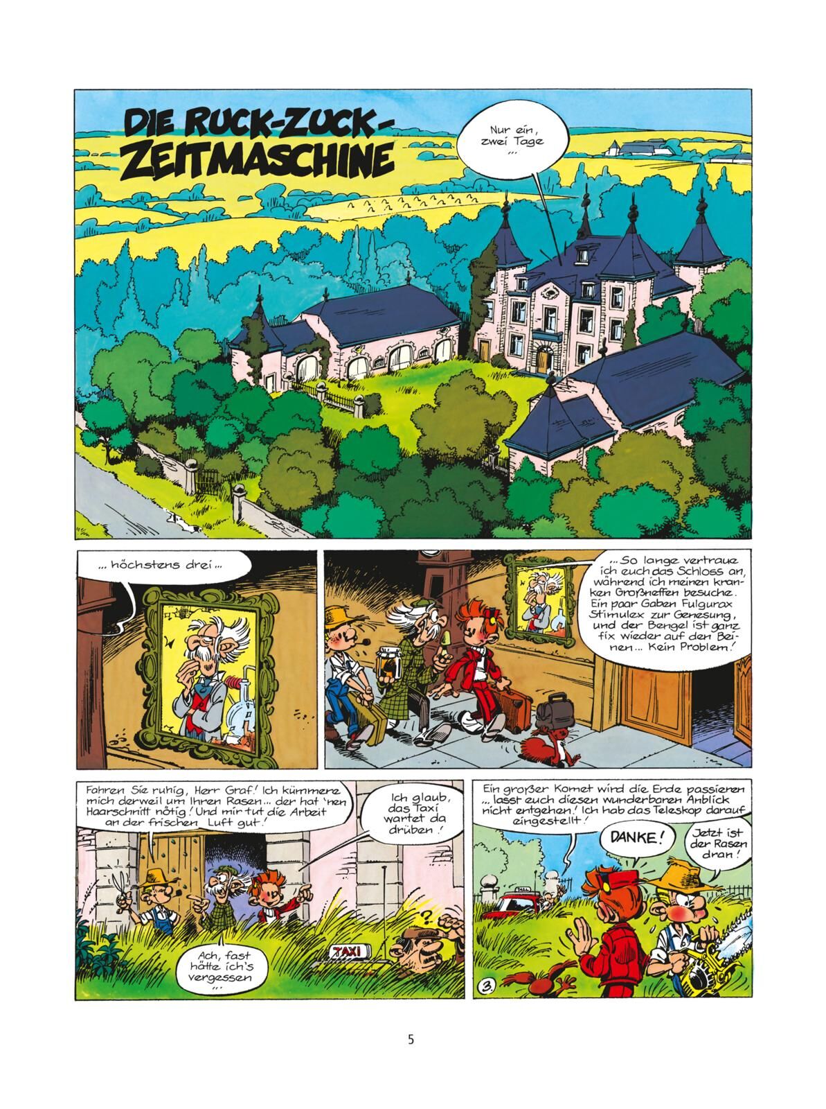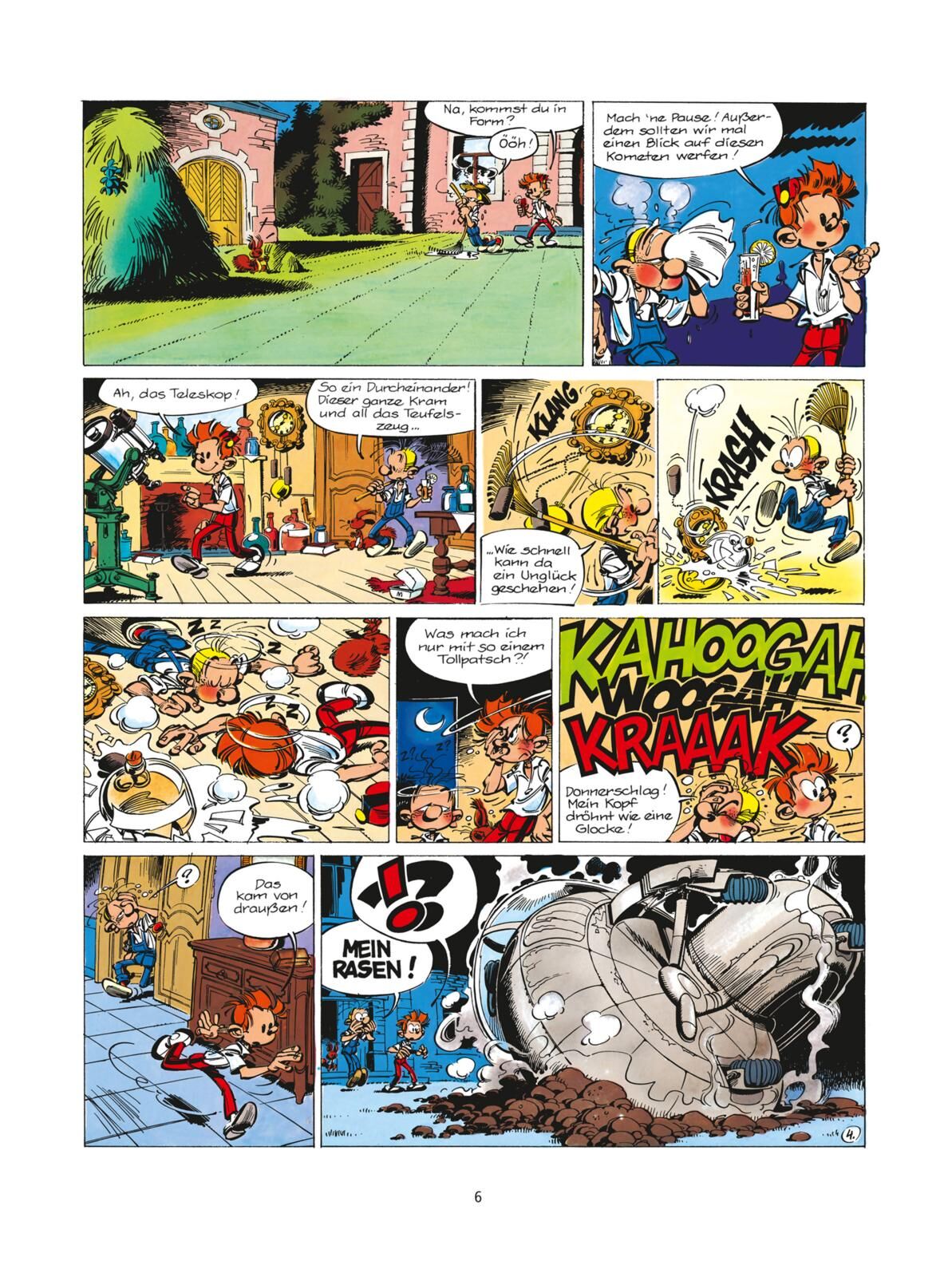 Spirou und Fantasio sollen Schloss Rummelsdorf hüten, während der Hausherr seinen kranken Großneffen besucht. Doch plötzlich taucht Graf Rummelsdorf wieder auf - mit einem Raumschiff und in Begleitung eines äußerst seltsamen Tiers. Mit seiner Staubsauger-Nase ...
