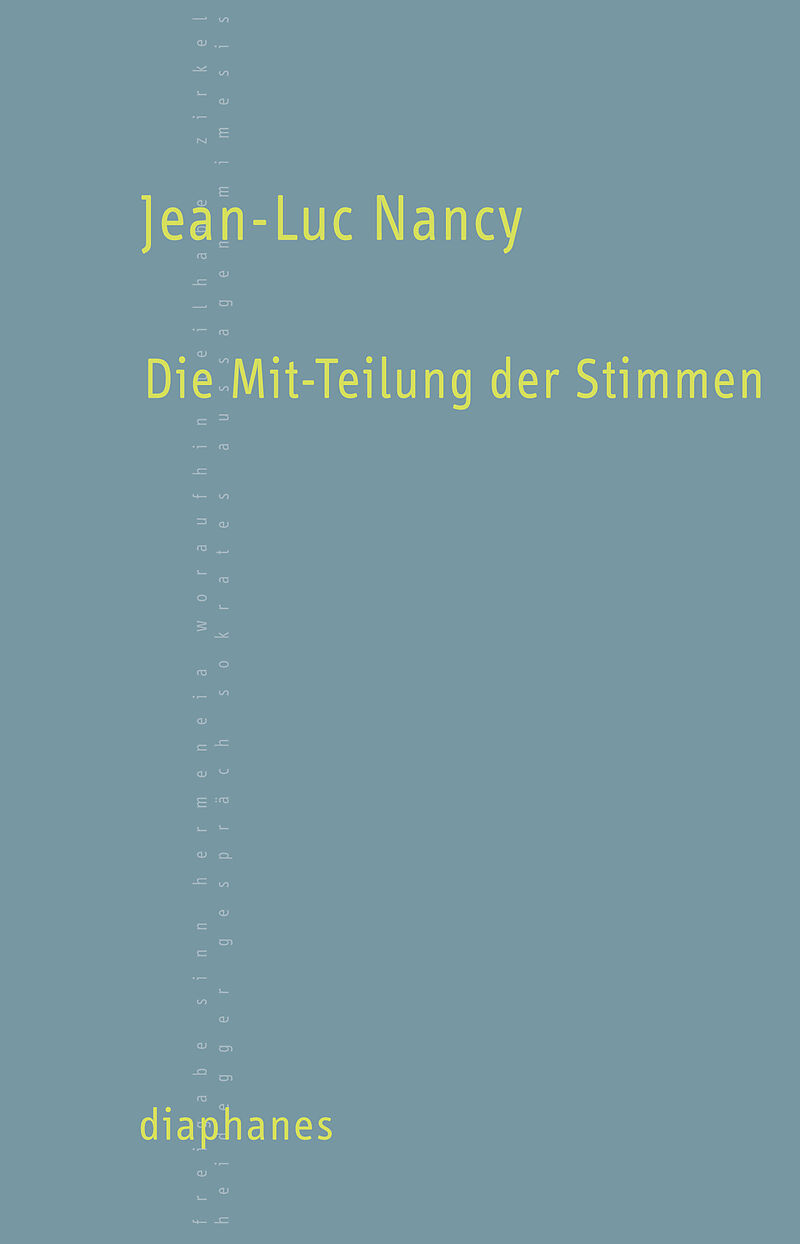 »Die Mit-Teilung der Stimmen« schließt mit einer Kundgabe, die öffnet: »Die Zeit ist vielleicht gekommen, um gänzlich auf die gründende oder teleologische Logik der Gemeinschaft zu verzichten, um auf das Interpretieren unseres Beisammens zu verzichten, um sta...