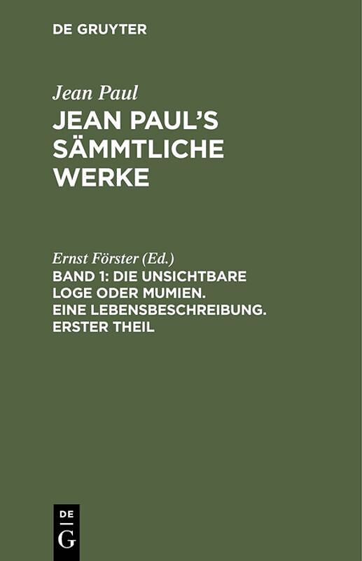 Jean Paul: Jean Pauls Sämmtliche Werke / Die unsichtbare Loge oder Mumien. Eine Lebensbeschreibung. Erster Theil