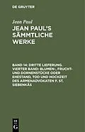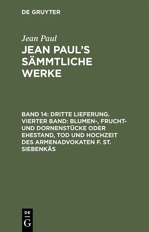 Keine ausführliche Beschreibung für "Dritte Lieferung. Vierter Band: Blumen-, Frucht- und Dornenstücke oder Ehestand, Tod und Hochzeit des Armenadvokaten F. St. Siebenkäs" verfügbar. Frontmatter -- Inhalt des vierten Bändchens -- Intelligenzblatt der...