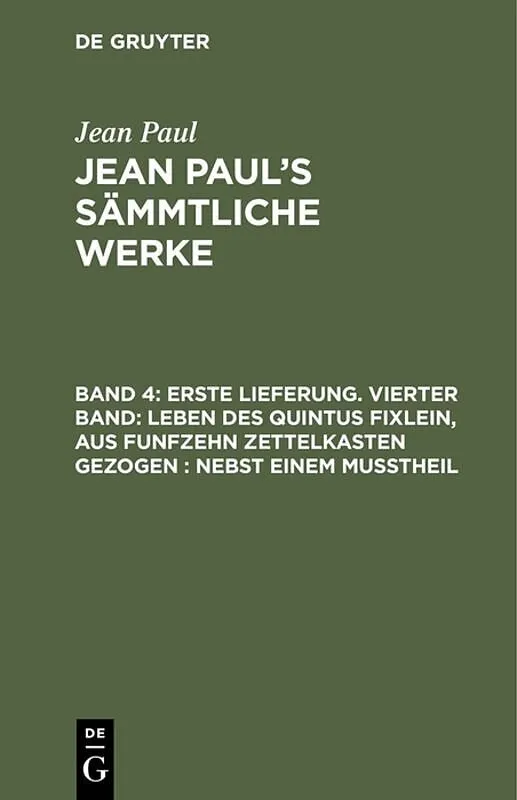 Keine ausführliche Beschreibung für "Erste Lieferung. Vierter Band: Leben des Quintus Fixlein, aus funfzehn Zettelkasten gezogen; nebst einem Mußtheil" verfügbar. Frontmatter -- Billet an meine Freunde, anstatt der Vorrede. -- Leben des Quintus Fixle...