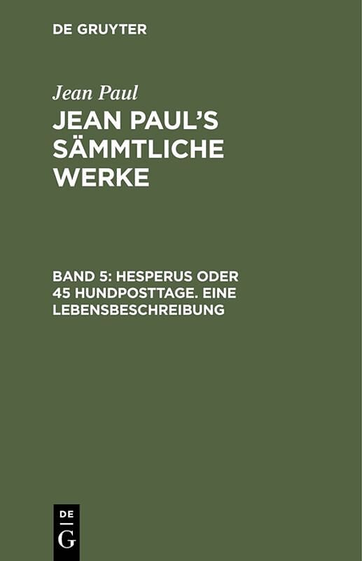 Keine ausführliche Beschreibung für "Hesperus oder 45 Hundposttage. Eine Lebensbeschreibung" verfügbar. Frontmatter -- Inhalt des fünften Bandes -- Hesperus -- Motto -- Vorrede zur dritten Auflage -- Vorrede zur zweiten Auflage -- Vorrede, sieben Bit...