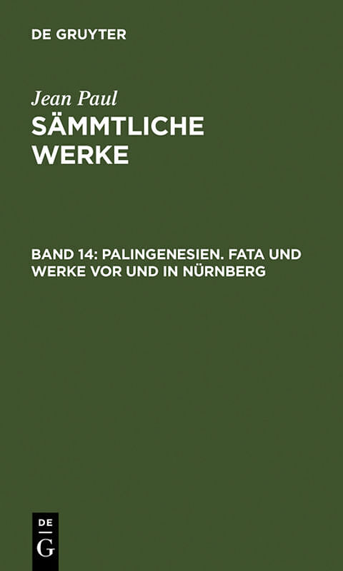 Frontmatter -- Inhalt des vierzehnten Bandes -- Fata und Werke vor und in Nürnberg. Erstes Bändchen -- Offner Brief an Leibgeber anstatt der Vorrede -- Alte Vorrede von Siebenkäs selber -- Erster Reise. Anzeiger -- Zweiter Reise. Anzeiger -- Dritter Reise. Anz...