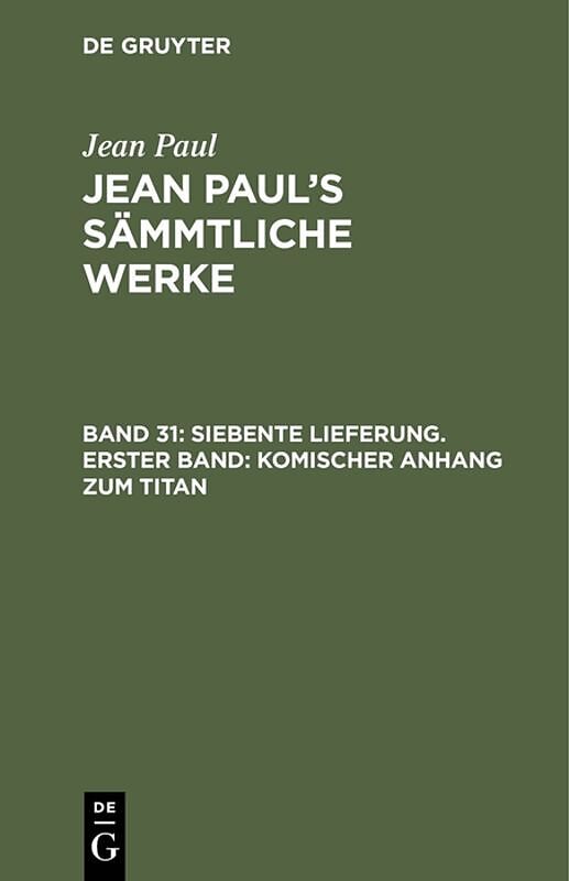 Keine ausführliche Beschreibung für "Siebente Lieferung. Erster Band: Komischer Anhang zum Titan" verfügbar. Frontmatter -- Ankündigung des nachstehenden Pestizer Realblattes -- 1ster Jenner. Neujahrsblatt -- 2ter Jenner. Abel- und Sethsblatt -- 3ter...