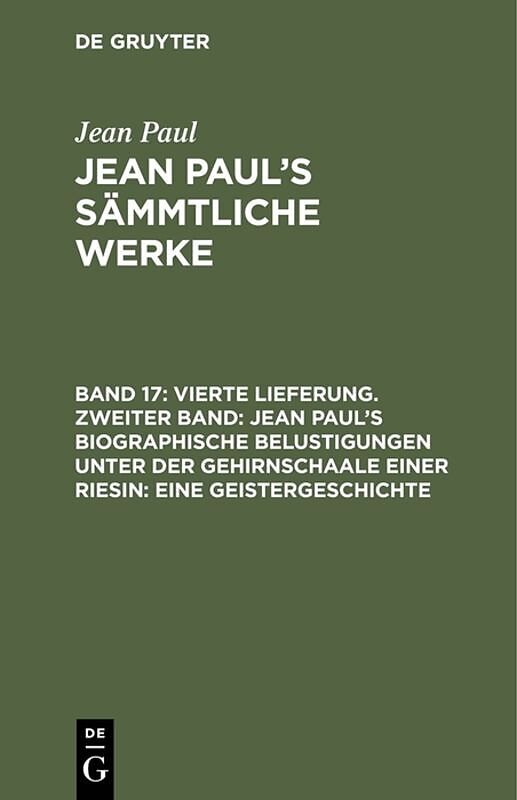 Keine ausführliche Beschreibung für "Vierte Lieferung. Zweiter Band: Jean Paul's biographische Belustigungen unter der Gehirnschaale einer Riesin. Eine Geistergeschichte" verfügbar. Frontmatter -- Vorrede -- Inhalt des ersten Bändchens -- Erste ...