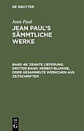 Keine ausführliche Beschreibung für "Zehnte Lieferung. Dritter Band: Herbst-Blumine, oder Gesammelte Werkchen aus Zeitschriften" verfügbar. Frontmatter -- Inhalt -- I. Die Schönheit des Sterbens in der Blüte des ledens ; und ein Traum von einem Schla...