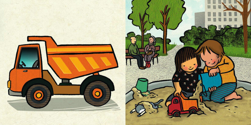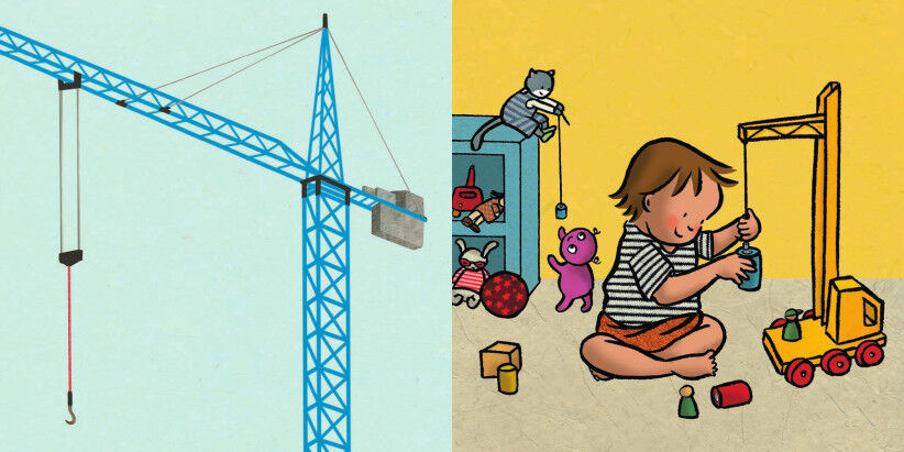 Von Tag zu Tag erleben die kleine Hauptfigur und ihr Kuscheltier neue Alltagsabenteuer. Da dies ausschließlich über Bilder geschieht, ist der Austausch mit Kindern in jeder Sprache möglich. Hier: Ist der Kran auf der Baustelle derselbe wie jener im Zimmer? Aut...