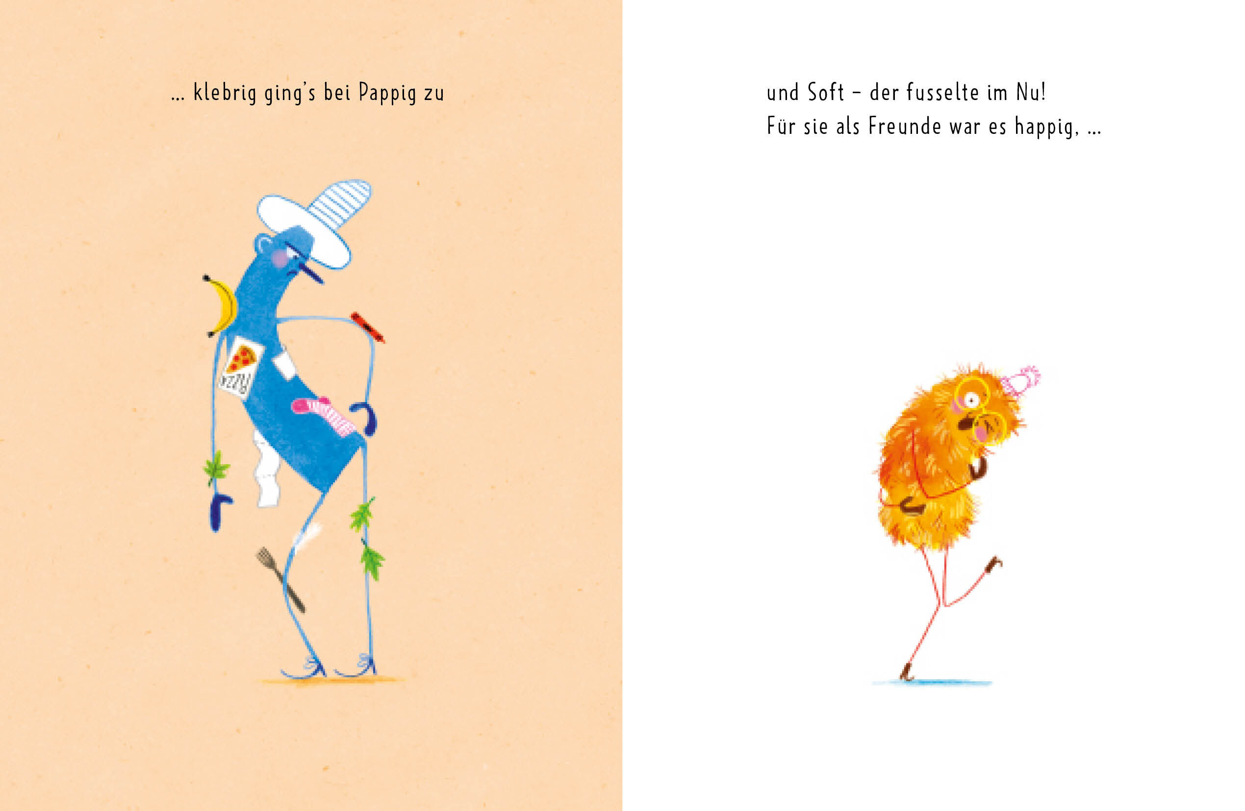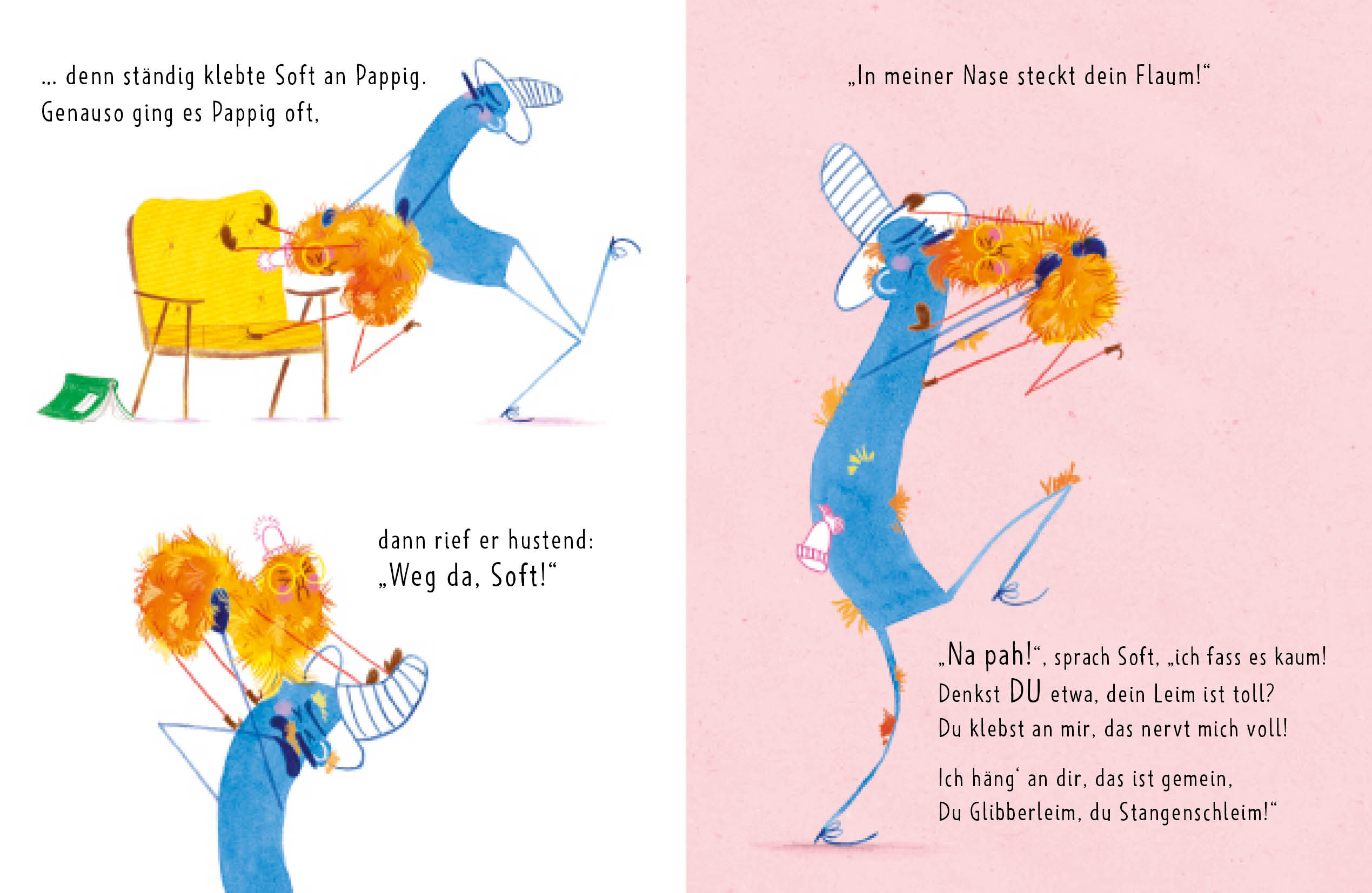 Soft und Pappig sind die besten Freunde, aber Softs Fell kitzelt Pappig immer in der Nase, und Pappig klebt wie Leim an Soft! Nach einem letzten Streit beschließen sie, ihre Freundschaft zu beenden - das Leben wird doch besser sein, wenn sie getrennter Wege g...