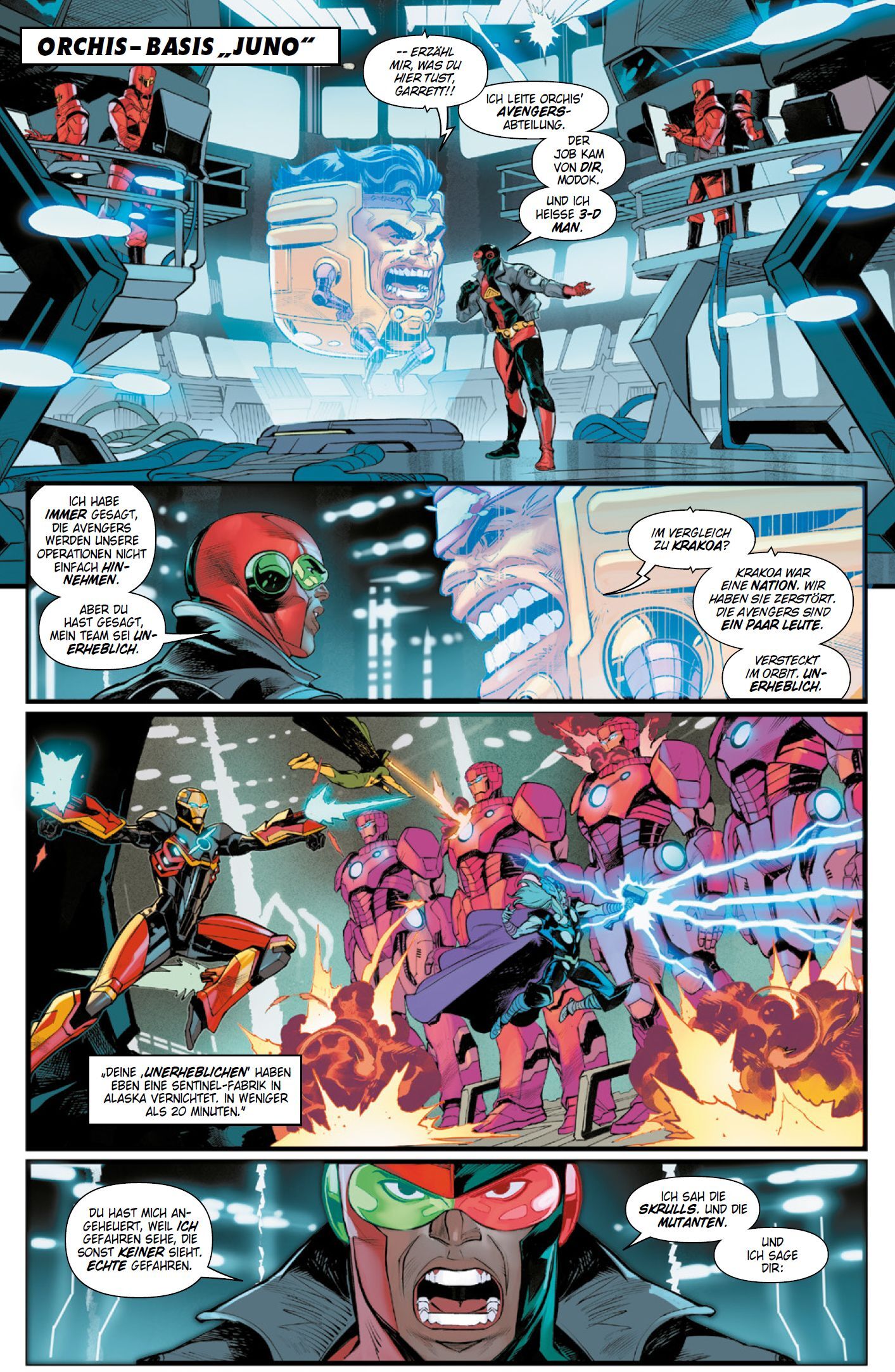 Die Avengers bekommen es mit fiesen Vampiren zu tun. ARMEEN AUS SENTINELS UND VAMPIREN Die Avengers um Captain Marvel und Iron Man stehen den X-Men gegen die Mutanten-Hasser von Orchis bei doch die Bösewichte schlagen mit einer Armee Sentinel- Riesenroboter zu...