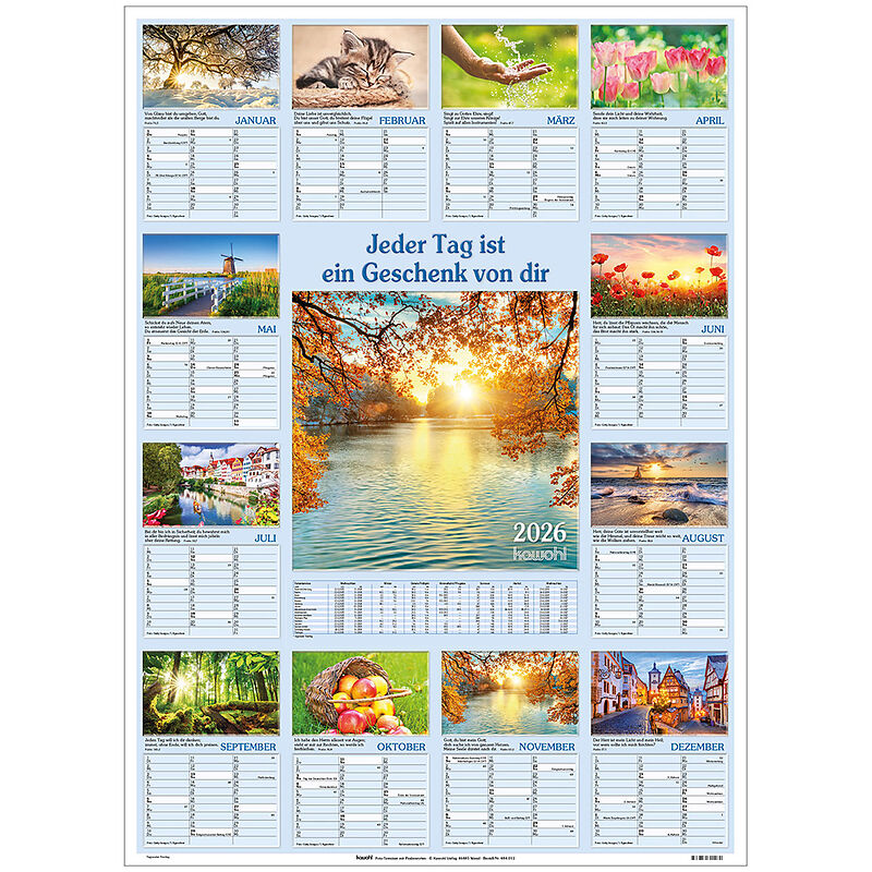 Abwechslungsreiche Fotos und Psalmworte. Raum für Ihre Termine in 2026. "Das ganze Jahr auf einem Blick" - Mit Platz für Termin- und Geburtstagseintragungen, Schulferien, ... Genau der richtige Kalender für Küchentüren, Arbeitsräume, Büros und als Gemeinde-Ter...