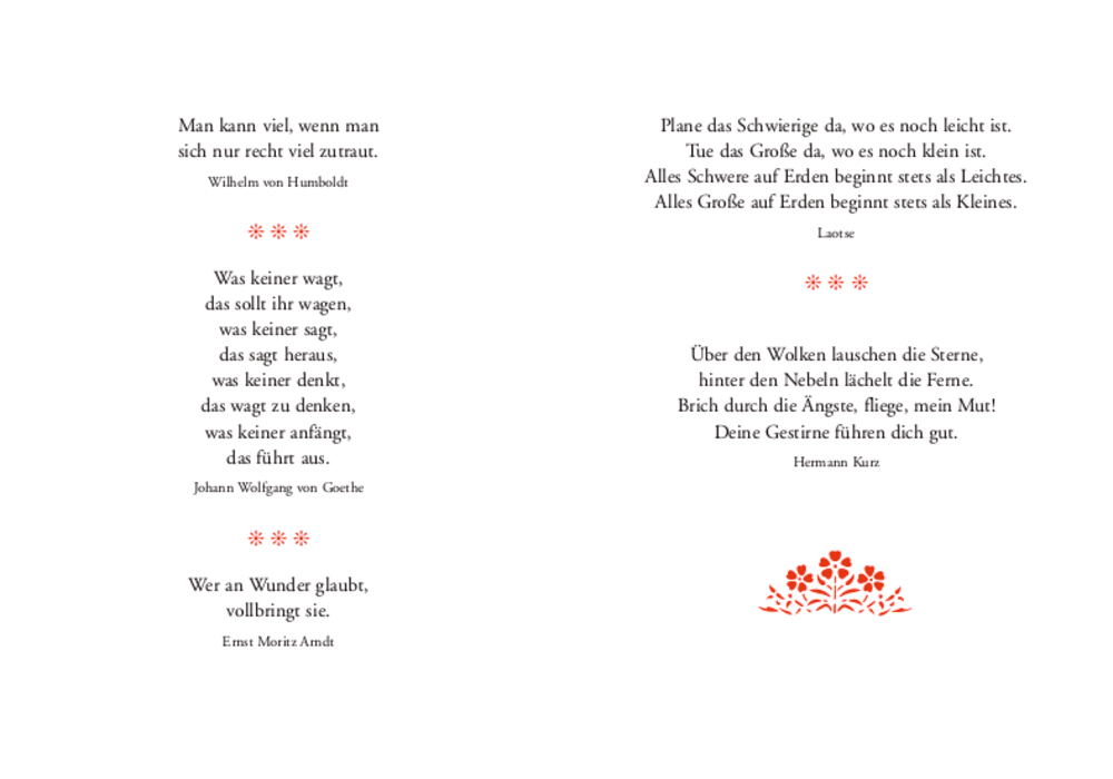 Der echte rote Faden ist das Markenzeichen dieser ausgefallenen Geschenkbuchreihe. Mit den schönsten Gedichten und Gedanken, gepflegtem Design und edlem Papier ist dieses von Hand gebundene Buch ein liebevolles und zugleich preiswertes Geschenk zu vielen Geleg...