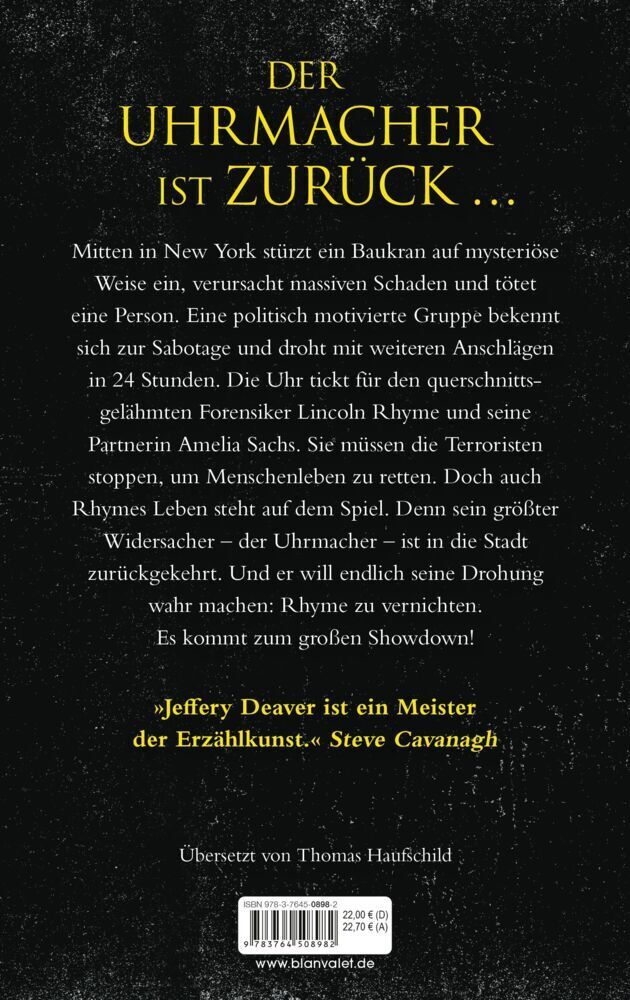 Rhymes Erzfeind kehrt zurück, während Terroristen New York in Panik versetzen ein neuer nervenzerreißender Einsatz für das Ermittlerduo Rhyme und Sachs! Mitten in New York stürzt ein Baukran auf mysteriöse Weise ein, verursacht massiven Schaden und tötet eine ...