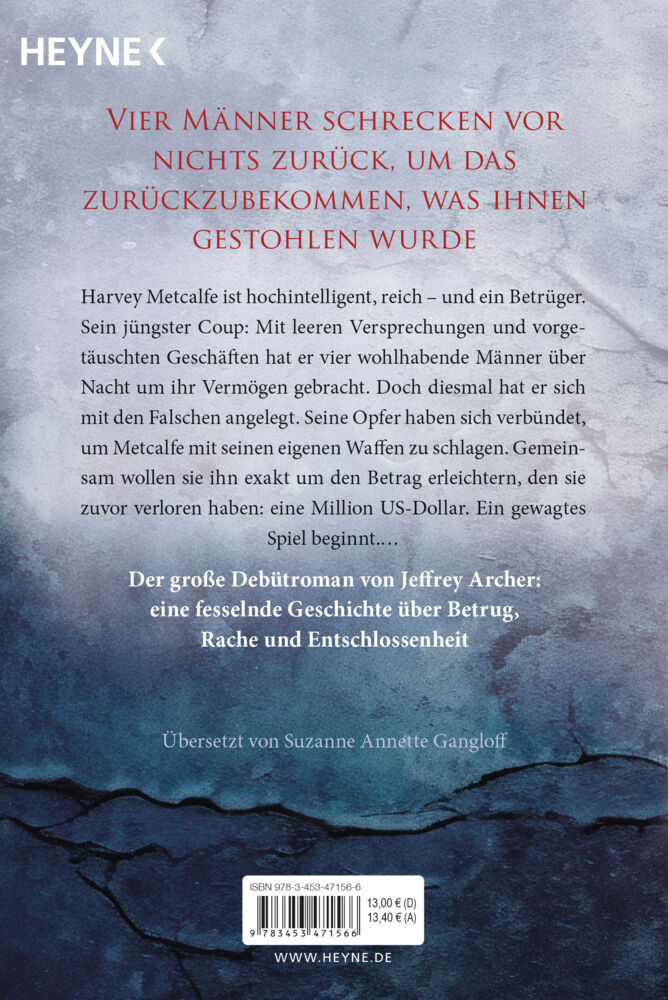 Der große Debütroman von Jeffrey Archer Harvey Metcalfe ist hochintelligent, reich - und ein Betrüger. Sein jüngster Coup: Mit leeren Versprechungen und vorgetäuschten Geschäften hat er vier wohlhabende Männer über Nacht um ihr Vermögen gebracht. Doch diesmal ...