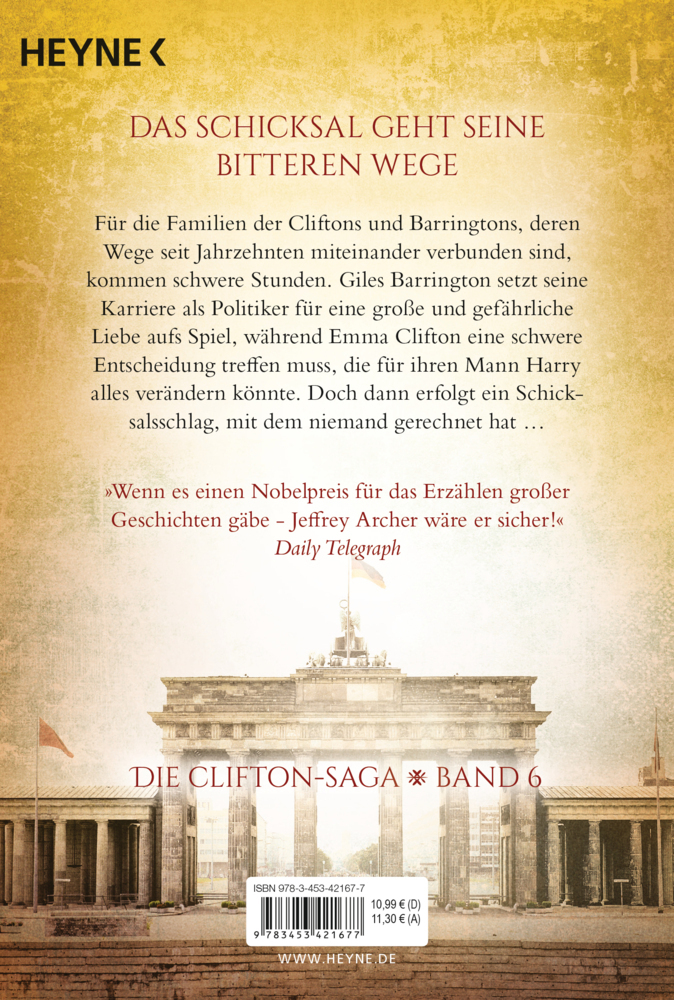 Für die Familien der Cliftons und Barringtons, deren Wege seit Jahrzehnten miteinander verbunden sind, kommen schwere Stunden. Giles Barrington setzt seine Karriere als Politiker für eine große und gefährliche Liebe aufs Spiel, während Emma Clifton eine schwer...