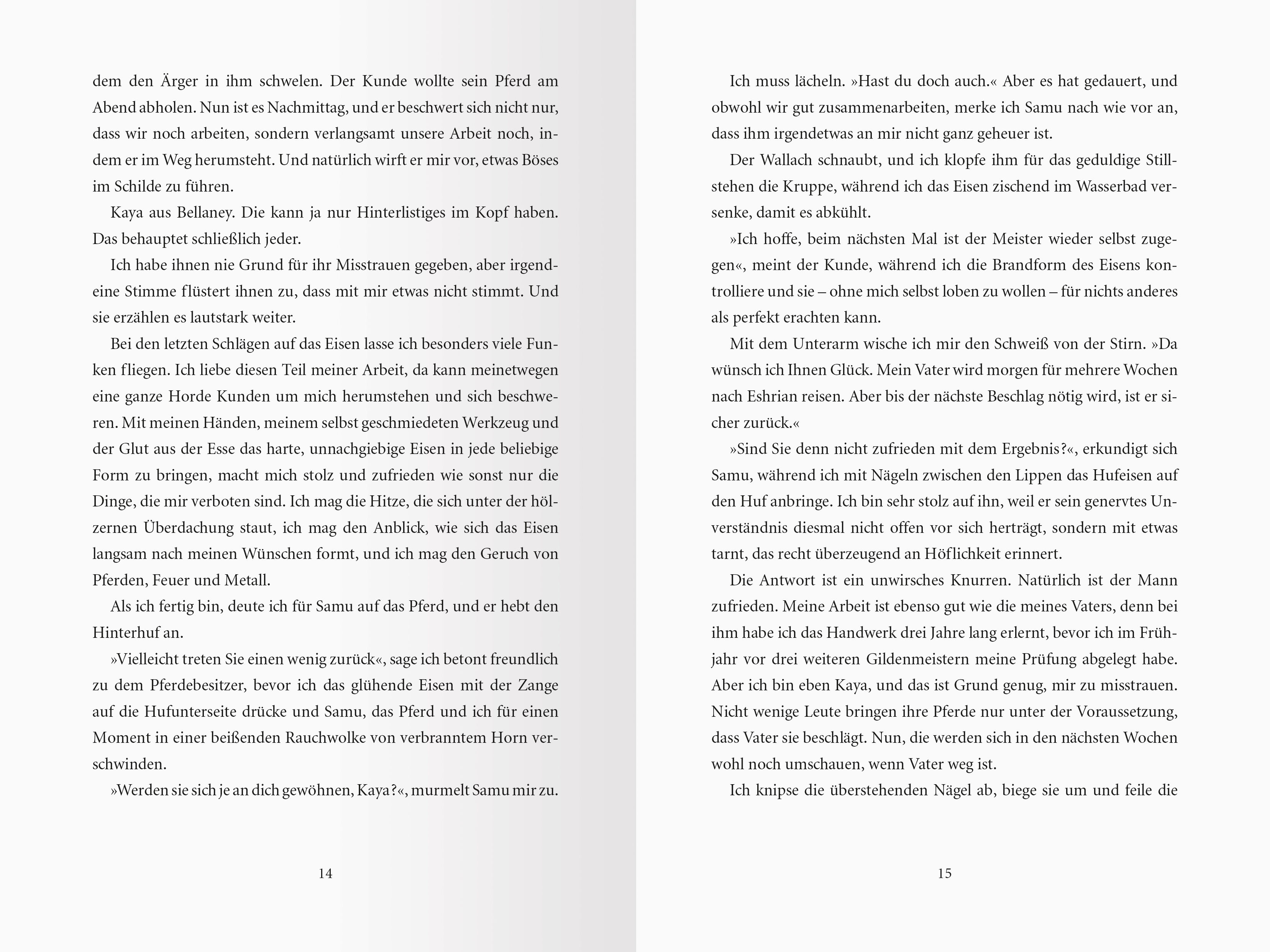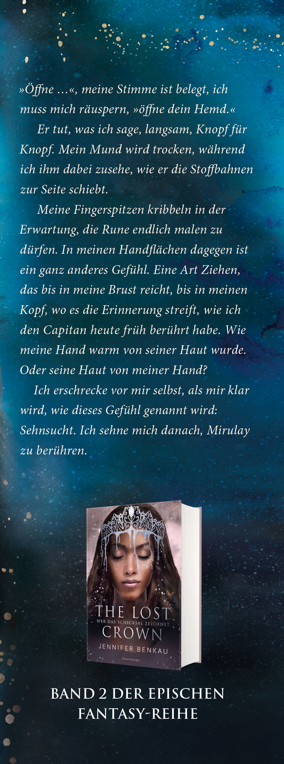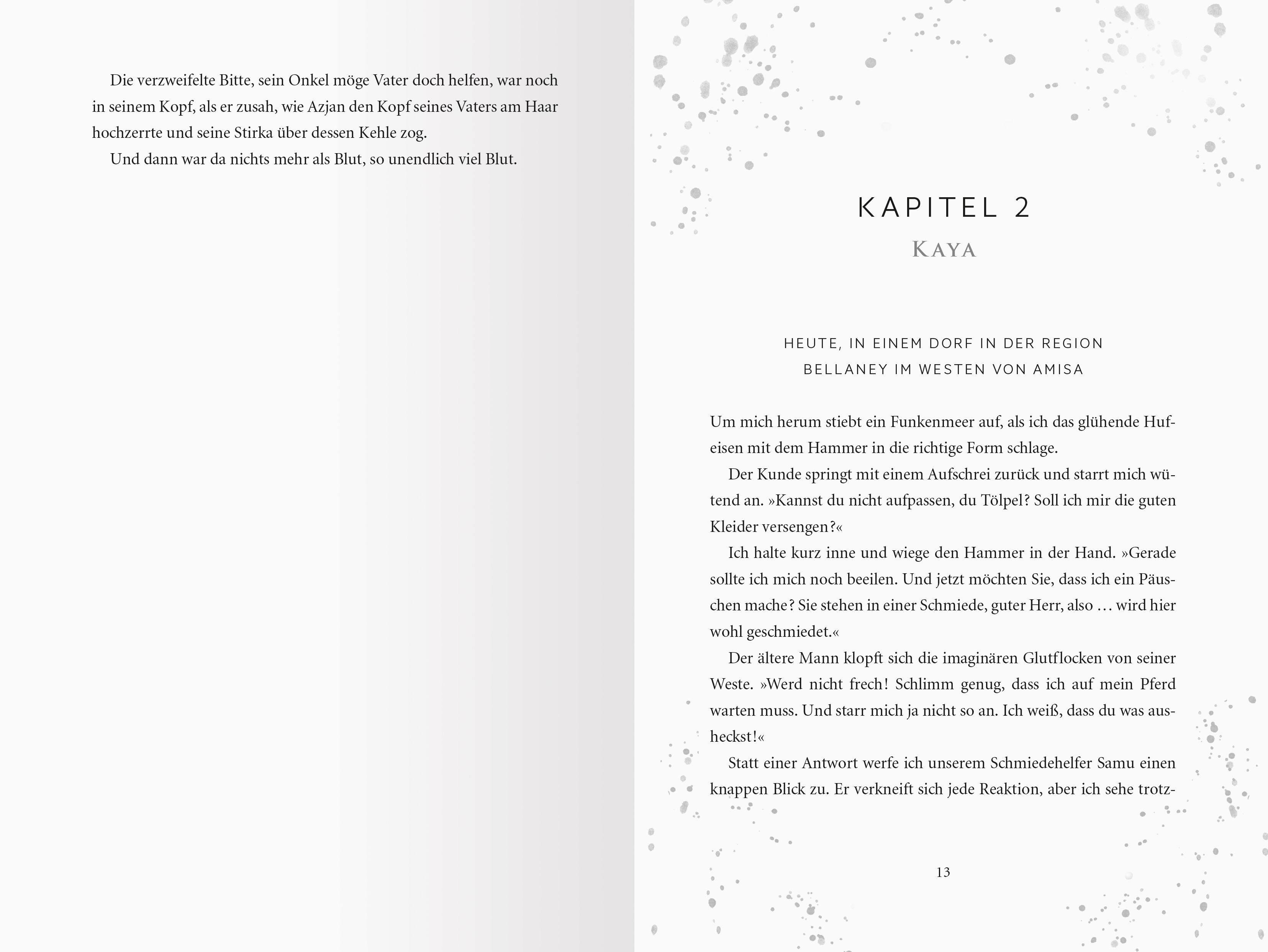 Sie malt Magie auf seine Haut. Nachtschwarz ist der Wald, in dem die junge Schmiedin Kaya von Räubern entführt wird. Totenbleich ist der verwundete Anführer Mirulay, der Kayas Hilfe braucht. Blutrot ist ihre Angst, dass sie einem Mann in die Falle gegangen ist...