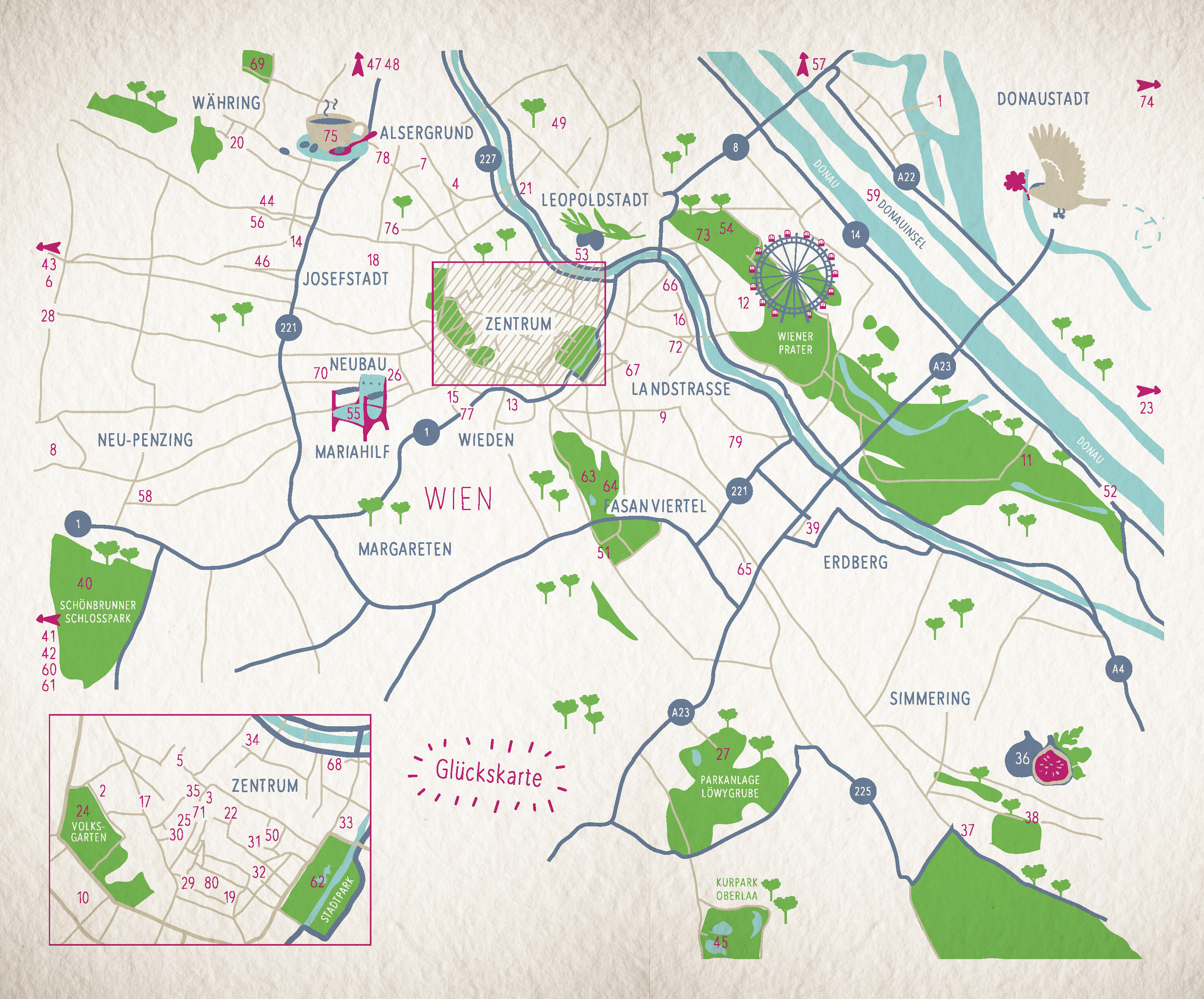 Wiener Schnitzel, Kaiserschmarrn und Sachertorte: In Wien liegt einem das Glück im wahrsten Sinne des Wortes auf der Zunge. Aber auch abseits des Kulinarischen überzeugt die Donaumetropole mit ihrer mondänen k.u.k.-Architektur, grünen Inseln mitten in der Stad...