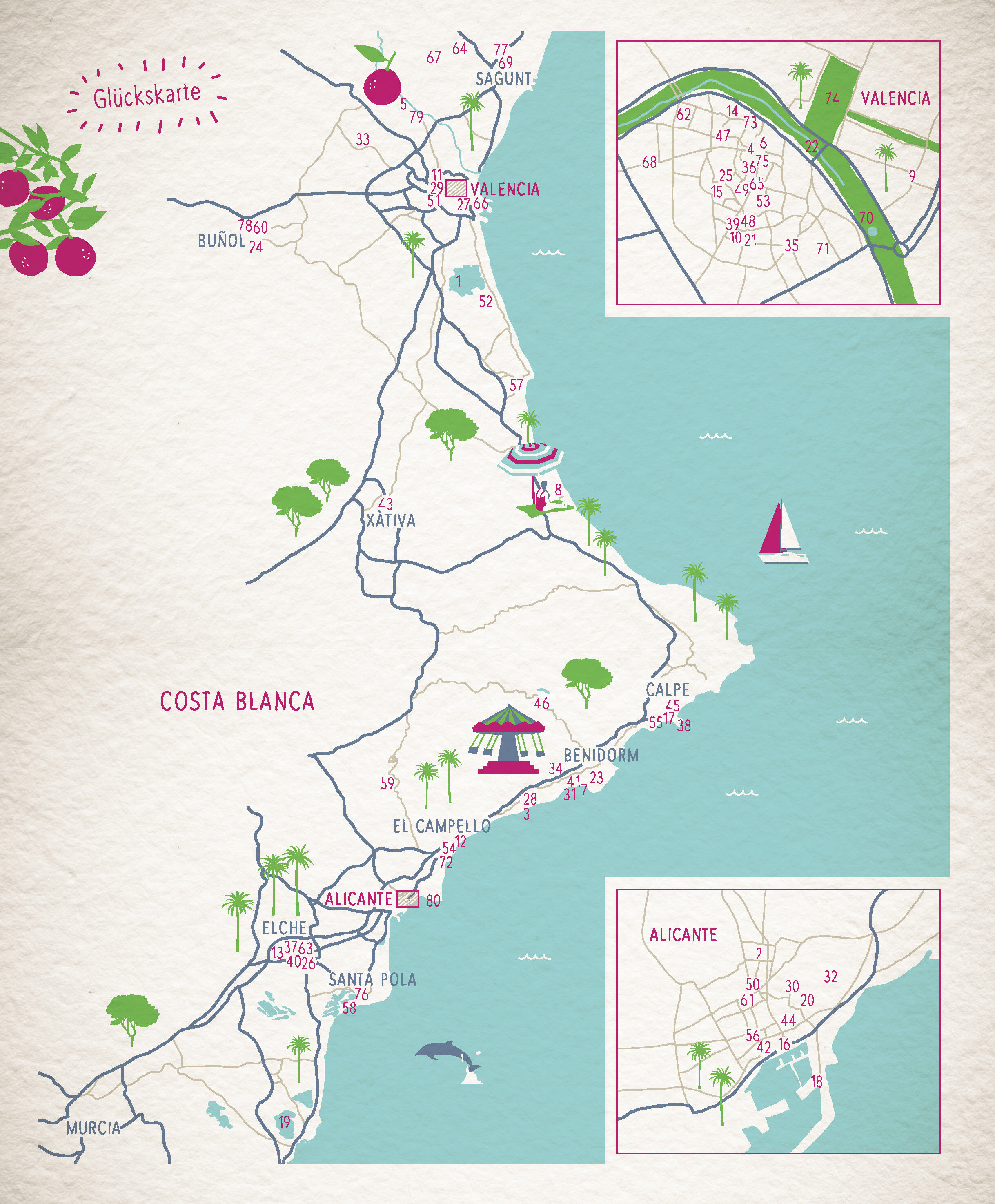 Allein die Lage am glitzernden Mittelmeer macht die Costa Blanca schon zum Glücksort! Im Hinterland und im nahen Valencia ist das Glück ebenfalls nicht weit. Hier gibt es die süßesten Orangen, Sonnenuntergänge zum Dahinschmelzen und eine Stadt, die die Fröhlic...