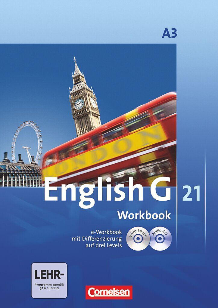 CD-ROM im Workbook ( e-Workbook ) mit vielen Übungen für das selbstständige Arbeiten zu Hause. Das Schulwörterbuch English G 21