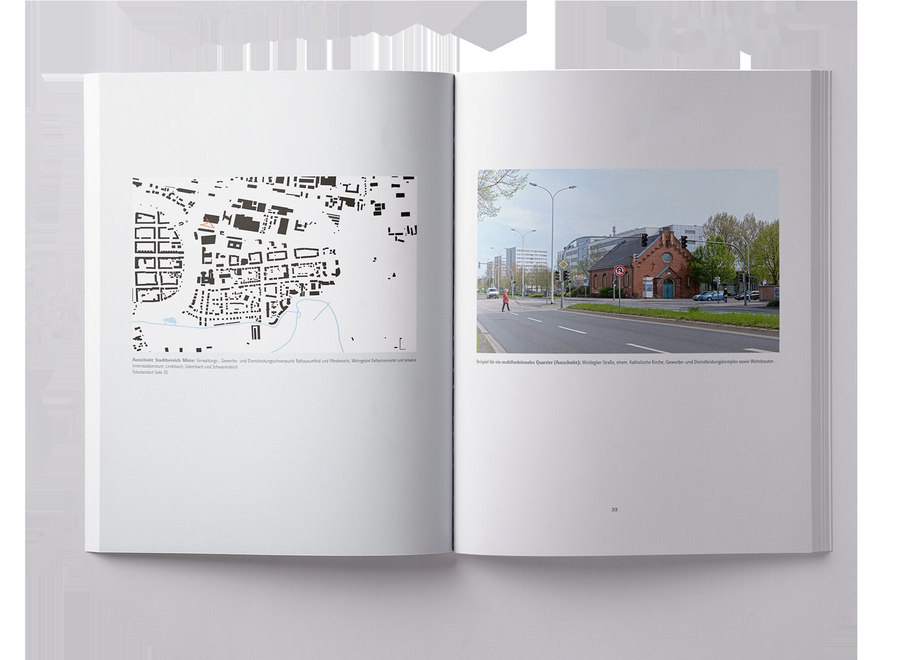 Städte sind so individuell wie Menschen. Der Grundriss einer Stadt ist wie ein Fingerabdruck. Auf der nebenstehenden Seite ist ein sogenannter Schwarzplan abgebildet. Durch Darstellung der bebauten Flächen entsteht ein Stadtabdruck, der in der Stadtplanung der städtebaulichen Analyse dient. Kneift man die Augen zusammen, tritt die Baustruktur von Neubrandenburg hervor. Auffällig sind die Spuren der mittelalterlichen Stadtgründung kreisrund in der Mitte und die typischen Strukturen der Plattenbaugebiete. Während Einfamilienhausgebiete organisierte Punkte mit Ecken sind, deuten große gefüllte Rechtecke auf Stätten für Versorgung, Industrie und Gewerbe hin. Solitärbauten sind freistehend und haben häufig eine markante Grundform. Diese können Wohnhäuser, öffentliche Gebäude, Indus- trieanlagen sowie Denkmale sein. Unterbrechungen der Siedlungsstruktur weisen auf die Lage von linearen Infrastrukturen wie Schienen und Straßen oder natürliche Zäsuren, wie Hänge und Täler, Gewässer und Wäldchen hin. Letztere sind oft Orte der Naherholung und ökologische Nischen, die für Frischluft und Kühlung in der Stadt sorgen. Nebengebäude, wie Garagen, erzeugen dichte Zeilen. Kleingärten bilden rasterhafte Pünktchenkolonien. Was da in abstrakter Form auf der Karte liegt, sind die Formationen realer Gebäude. Durch ihre Gestalt, Größe und Stellung innerhalb des Gefüges wirken sie dabei harmonisch eingepasst oder herausgestellt. Die Organisation von sichtbaren, ästhetischen oder einfach schönen Elementen der Stadtgestaltung ist eine Aufgabe des Städtebaus. Die 1968 bis 1973 in Neubrandenburg lebende Schriftstellerin Brigitte Reimann fand treffende Worte für ihre neue Heimatstadt, als sie in einem Dokumentarfilm von Berd Scharioth, für den sie den Text schrieb, eine durch die Innenstadt spazierende Architektin sagen ließ: Was mir hier gefällt, sind die Kontraste, die sich so glücklich zusammenfügen. Backstein und Rasterbau, Fachwerk und Beton, der alte Wall und die Transitstraße. (Sonntag, den Briefe aus einer Stadt, aus der Filmreihe: Auf Entdeckungsreise durch die DDR, 1969) Die Frau könnte die vielbeachtete Stadtarchitektin Dr. Iris Dullin¬-Grund sein. Über die Staatsgrenzen hinaus erhielt sie Anerkennung für ihren innovativen Generalbebauungsplan (1979) für Neubrandenburg. Dabei schuf sie in der von der Eiszeit geformten Landschaft eine städtebauliche Struktur, die an die Topografie angepasst ist. Über die Stadtgrenzen hinaus legte sie auf den Geländehöhen Wohngebiete an, die zusammen mit dem historischen Kern eine Großstadt ausfüllen sollten. Neubrandenburg kann als 15-Minuten-Stadt verstanden werden. Je nach Startpunkt reichen 15 Minuten zu Fuß, mit dem Fahrrad oder Auto, um das Stadtzentrum zu erreichen. Innerhalb der Wohngebiete geht es bei alltäglichen Wegen zum Einkauf, zur Schule und zum Kindergarten oft noch schneller und ganz ohne Auto. Das städtebauliche Prinzip Satellitenstadt wird nach der politischen Wende auf breiter Ebene kontrovers diskutiert. Der industrielle Wohnungsbau der 1970er bis 1990er Jahre ist dabei einprägsam. Auf den ersten Blick scheint das Bild Neubrandenburgs von Plattenbauten bestimmt. Jedoch bietet die Stadt viel mehr, und Platte ist nicht gleich Platte. Die hier entwickelte Wohnungsbauserie WBS 70 ist zum festen Bestandteil der DDR-Architektur geworden, auch bedingt durch ihre flexible Einsatzweise mit optionalen individuellen Details. Dies sind zum Beispiel: das Blumenfenster, Gesimse und keramische Gestaltung der Fassadenoberflächen, aber auch Erker, Loggien und Wintergärten sowie Dachabschlüsse, Giebelbalkone und Ecklösungen. Eine alte Stadt wie Neubrandenburg, gegründet 1248, war und ist gesellschaftspolitischen Wandlungen ausgesetzt. Im Städtebau kann man solche Brüche anhand der Bebauung ablesen. Die sich wandelnde Ordnung und Organisation von Gesellschaft, Wirtschaft, Kultur und Sozialem drücken sich im Bauen und im Umgang mit dem Bestand aus. Seit jeher hat die Stadt auf einschneidende Veränderungen reagiert und sich an vielen Stellen erneuert. Eine stetige Stadtentwicklung bringt dabei Nahtstellen im Stadtkörper hervor, die Spannungen durch Kontraste erzeugen. Das Miteinander verschiedener Architektursprachen dokumentiert die vorgenommene Neuordnung und verweist auf die Baugeschichte. Aufgrund der jeweiligen Erfordernisse werden vorhandene Häuser erneuert, umgebaut oder entfernt. Straßen werden verändert, neue Gebäude entstehen zwischen alten oder in ganz neu erschlossenen Gebieten auf der grünen Wiese. Die Stadt wächst und unterliegt einer ständigen Bewährungspflicht. Werte, Bedarfe und Bauverfahren wandeln sich. Dabei beeinflussen sowohl große Bauprojekte als auch kleine Maßnahmen das Stadtbild. Die Gestaltung von Zwischenräumen kann Architektur neu in Szene setzen und Stadträume beleben. Die Schokoladenseiten werden zu Postkartenmotiven, die Alltagsräume der Menschen mit ihren oft versteckten Qualitäten bleiben im Hintergrund. Das Bild der Stadt ist subjektiv, denn es entsteht durch die visuelle Wahrnehmung der gebauten Umwelt beim Betrachter und ist beeinflusst von seinem Bedürfnis nach Orientierung und Anregung. Die Auswahl der gezeigten Objekte geht im Wesentlichen auf die Aufzeichnungen des in Neubrandenburg wirkenden Architekten und Stadtplaners Lutz Braun (19602022) zurück, der für dieses Buchprojekt eine erste Zusammenstellung vornahm. Entstanden ist eine individuelle Sammlung von Ergebnissen des Städtebaus, der Gebäude- und Landschaftsarchitektur und darüber hinaus auch der Gedenkstätten und Geschichtsdenkmale in Neubrandenburg. Sie kann als persönliches städtebauliches Album eines leidenschaftlichen Stadtplaners angesehen werden. Nach räumlichem Bezug angeordnet, finden sich auf den folgenden Seiten sowohl Einzelansichten als auch weite Aufnahmen von Stadtbereichen, in denen sich Alt und Neu miteinander arrangieren. Die Aufnahmen sind aus der Fußgängerperspektiv