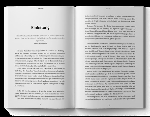 Bitcoins, Blockchain-Technologie und Smart Contracts sind die Schlagworte der digitalen Revolution, in der wir uns befinden. Vermeintlich schleichend, schwerfällig und von Banken augenscheinlich opponiert, verbreitet sich diese neue Technologie der Dezentralisierung rasend schnell. Wer jetzt denkt, es ginge dabei lediglich um die Bankenlandschaft, der befindet sich auf dem Holzweg: Die neue Ära der Blockchain ist in vollem Gange sämtliche Lebensbereiche und Industrien umzuwälzen. Ähnlich dem Internet der 96er und 97er Jahre ist heute Vielen die Bedeutung der Blockchain-Technologie und der immensen Aufbruchstimmung im Kryptobereich gar nicht bewusst. Während Medien, Politiker und diverse Influencer immer wieder auf die Risiken verweisen und noch langatmig diskutieren, machen gescheite Vordenker Nägel mit Köpfen! Sie positionieren sich rechtzeitig, um von dem Mega-Boom zu profitieren sei es in Form von Think-Tanks in Unternehmen, eigenen Start-Ups oder als Krypto-Investoren. Dabei ist eine Investition in Krypto bei Weitem kein Selbstläufer: Immer wieder hört man von Personen, die durch technische oder blauäugige Fahrlässigkeit große Summen verlieren. Keine Investition ohne Risiko! Wer in die Welt von Bitcoin und Co. eintaucht, dem muss klar sein, dass der Kryptomarkt extrem volatil ist und dass er seinen kompletten Einsatz schlagartig verlieren kann. Von daher sei direkt vorneweg gesagt: Eine Investition in Kryptowährungen sollte lediglich mit Risikokapital unternommen werden! Trotzdem: Wer zwischen den Zeilen liest, der erkennt, dass die Blockchain-Technologie und der Siegeszug von digitalen Kryptowährungen - in dessen Mitte und Rampenlicht der Bitcoin steht - nicht mehr aufzuhalten ist. Heroische Erfolgsgeschichten, bei denen irgendwelche Jugendlichen in kurzer Zeit zu Millionären geworden sind, weil sie zum richtigen Zeitpunkt in Kryptowährungen investiert haben, gibt es genauso. Offiziell brüskieren sich Banken und reiche Vermögende über Bitcoin und Co. , doch insgeheim ärgern sich viele von ihnen, dass sie noch nicht früher auf den neuen Tech-Boom aufgesprungen sind. Während beispielsweise der CEO von JP Morgan, Jamie Dimon, öffentlich den Bitcoin heruntermachte, ihn als Betrug bezeichnete und mit der Tulpenzwiebelblase des 17. Jahrhunderts verglich , nutzte JP Morgan 2 Tage später den lädierten Kurs zum günstigen Einstieg und investiert ca. 3 Millionen Euro. Dabei fällt auf, dass auch andere große Finanzhäuser wie Morgan Stanley, Goldman Sachs und Barclays, ebenfalls schon mitspielen. Später, als die Rally gelaufen war, ruderte Jamie Dimon wieder zurück und sprach Kryptowährungen dann doch ihre Daseinsberechtigung aus. Auch die großen Zentralbanken sind sehr an dem Thema Krypto interessiert, kann die neue Technologie doch mindestens dazu genutzt werden, das bisherige Geldsystem effizienter zu gestalten. Das wäre aus ihrer Sicht natürlich allemal besser, als selbst abgelöst zu werden. Es gibt in den Reihen der Zentralbanken zwar auch viele Kritiker des Bitcoins und von Kryptowährungen, aber trotzdem: Die Federal Reserve Bank (kurz: Fed, Zentralbank der USA) glaubt sogar, dass der Bitcoin eine ähnliche Rolle wie das Gold einnehmen könnte und dass digitales Vermögen als neue Vermögensklasse zur Portfoliodiversifikation entstehen könnte. Aus meiner Sicht wird es das auch - und zwar weit über den Bitcoin hinaus. Eine wichtige Hürde für seine Anerkennung als Vermögenswert auch von den Geschäftsbanken hat der Bitcoin im Dezember 2017 genommen. Zwei große Börsen in den USA, die CME und die CBOE, begannen damit, Futures auf den Bitcoin auszugeben. Durch solche Schritte wird es insbesondere für institutionelle Investoren immer einfacher, in den Kryptomarkt einzusteigen, ohne sich mit den technischen Anforderungen auskennen zu müssen. Stattdessen können sie mit einem ihnen bekannten und regulierten Finanzinstrument, den Futures, vom Bitcoinkurs partizipieren. Weitere Bitcoin-Finanzprodukte wurden von der CBOE, CME und Nasdaq bereits angekündigt. Es könnte sich dabei um Optionen oder Indexfonds (ETFs) handeln, die noch mehr Marktteilnehmern eine Investition in Bitcoin ermöglichen würden. Auf Unternehmens…