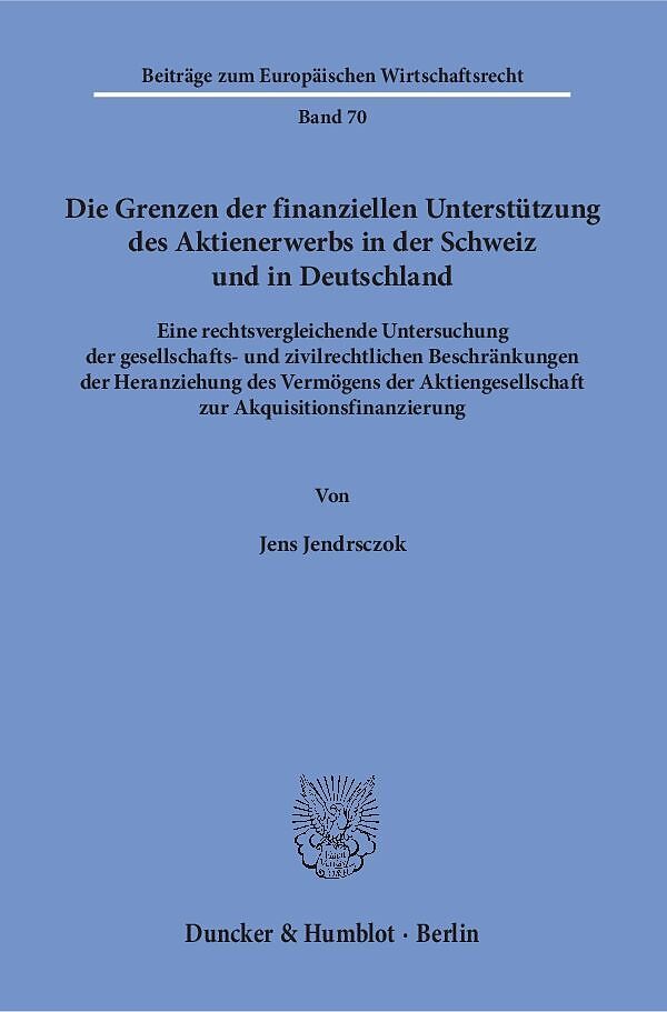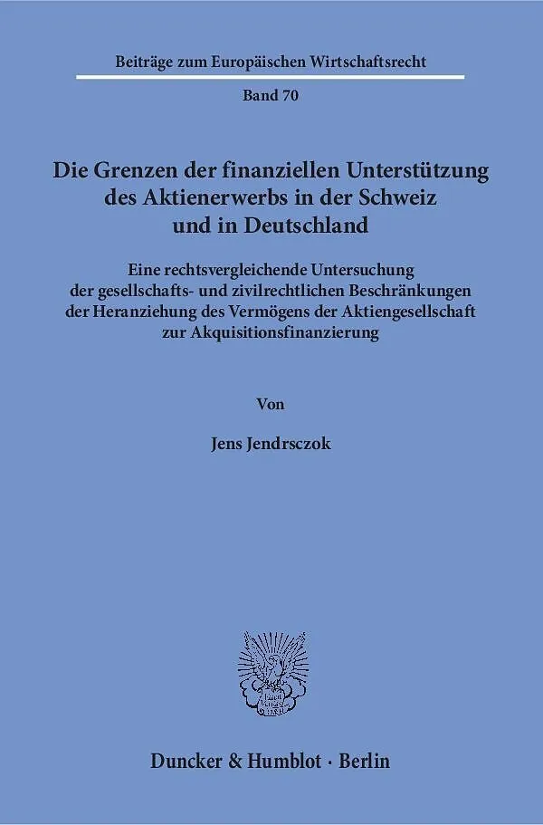 Die Arbeit untersucht rechtsvergleichend die Beschränkungen, denen Aktiengesellschaften nach deutschem und schweizerischem Recht bei der Finanzierung des Erwerbs ihrer Anteile durch Dritte, insbesondere bei leveraged buyouts, unterliegen. Besonderes Augenmerk ...