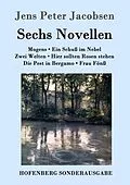 Jens Peter Jacobsen: Sechs Novellen Gustav Kiepenheuer Verlag, Weimar 1912. Aus dem Dänischen von Marie von Borch. Inhaltsverzeichnis Novellen Mogens Ein Schuß im Nebel Zwei Welten Hier sollten Rosen stehen Die Pest in Bergamo Frau Fönß Neuausgabe mit einer Bi...