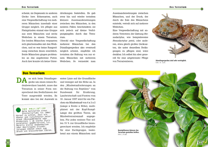 Terrarianer schließen die possierlichen, maximal 9-10 cm langen, Dünnfingergeckos schnell ins Herz. Seine verhältnismäßig einfache Haltung und Nachzucht, sowie erschwinglichen Anschaffungskosten machen diese Tiere gerade für Anfänger sehr interessant. Jens Rau...