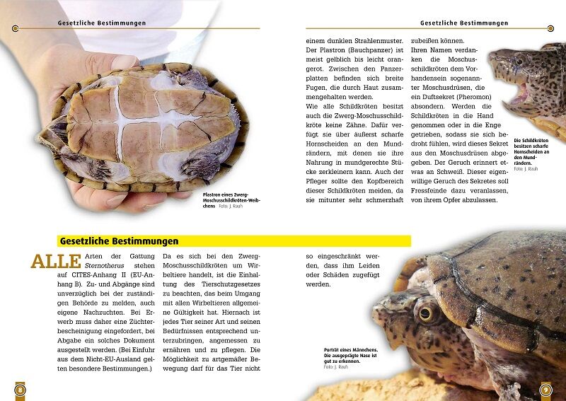 Wenn die Moschusschildkröten auch in ihrer Färbung nicht so recht mit den farbenfrohen Schmuckschildkröten mithalten können, so zeigen sie doch bei näherer Betrachtung zahlreiche Vorzüge, nicht zuletzt ihrer handlichen Endgröße wegen. Vor allem Jungtiere, die ...