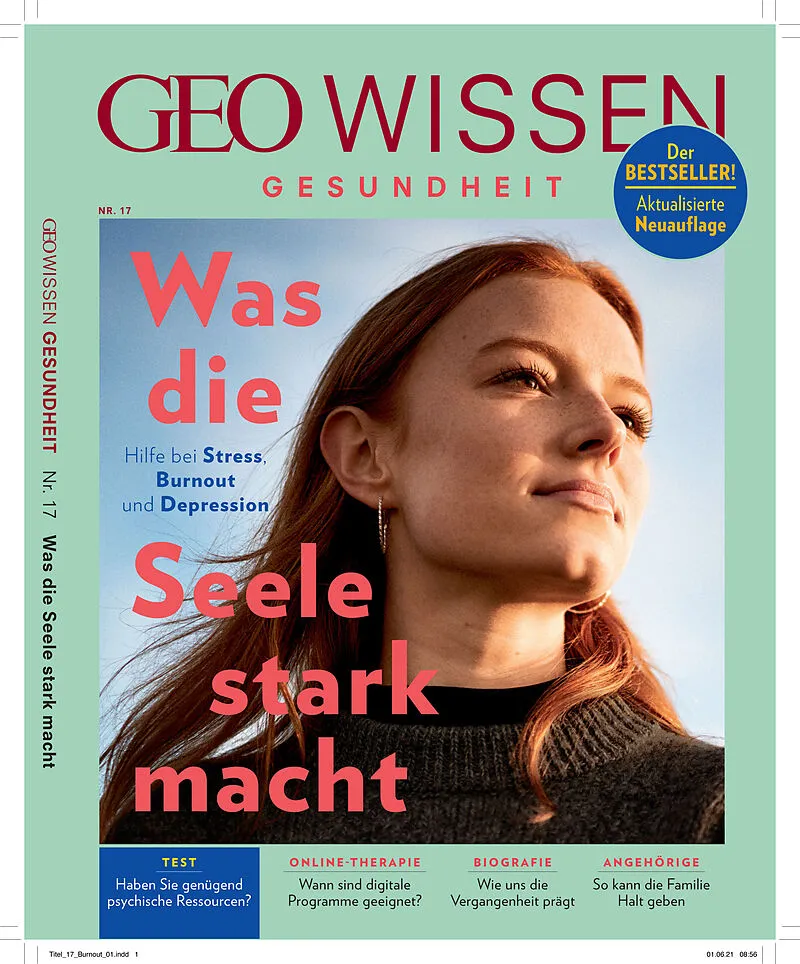Was die Seele stark macht Hilfe bei Stress, Burnout und Depression Themen dieses Heftes u.a.: Test Haben Sie genügend psychische Ressourcen? Online-Therapie Wann sind digitale Programme geeignet? Biografie Wie uns die Vergangenheit prägt Angehörige So kann die...