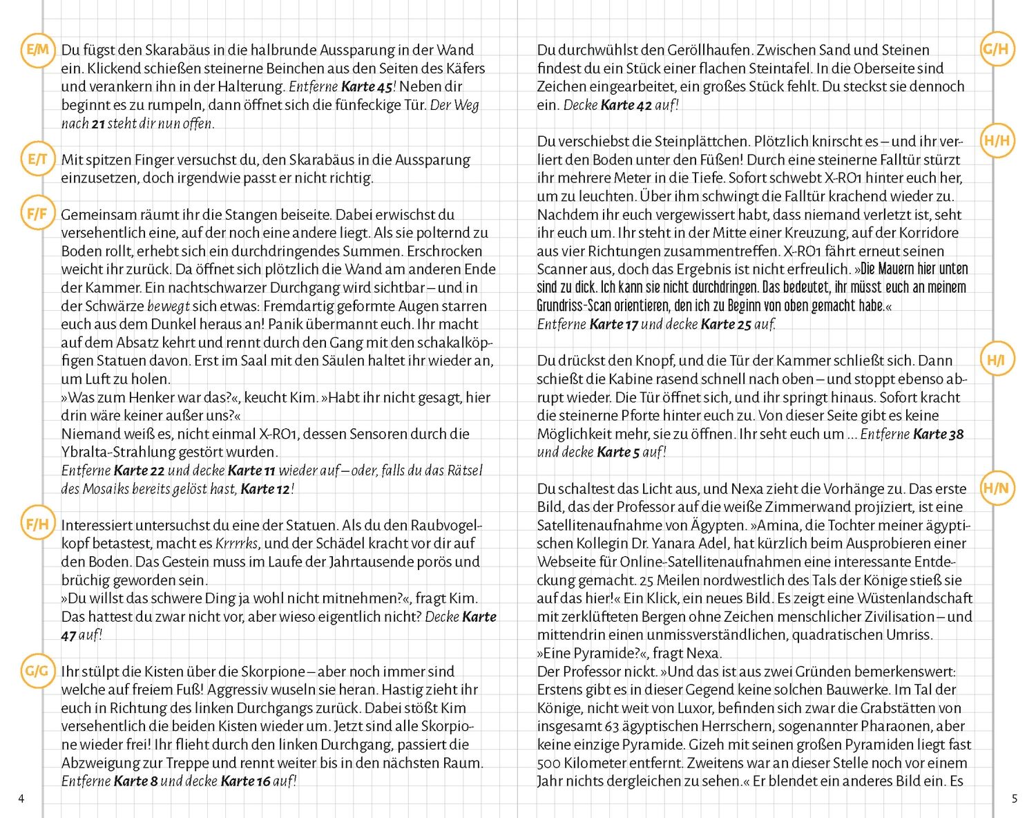 Das interaktive Kartenspiel Xplorer Kidz entführt Kinder ab 9 Jahren in eine geheimnisvolle Pyramide im alten Ägypten. 52 Karten lassen die Spielenden in eine spannende Alien-Geschichte eintauchen: Sie reisen an geheimnisvolle Orte, erkunden abenteuerliche Labyrinthe und entscheiden dabei selbst, welchen Weg sie gehen oder welche Tür sie öffnen wollen. Ein einzigartiger Spielspaß, der kleine und große Fans von Exit Games, Escape Rooms und Quest-Büchern begeistern wird. Ein spielerischer Einstieg in die Welt des Lesens für Kinder ab 9 Jahren, die Abenteuer und Rätsel lieben!