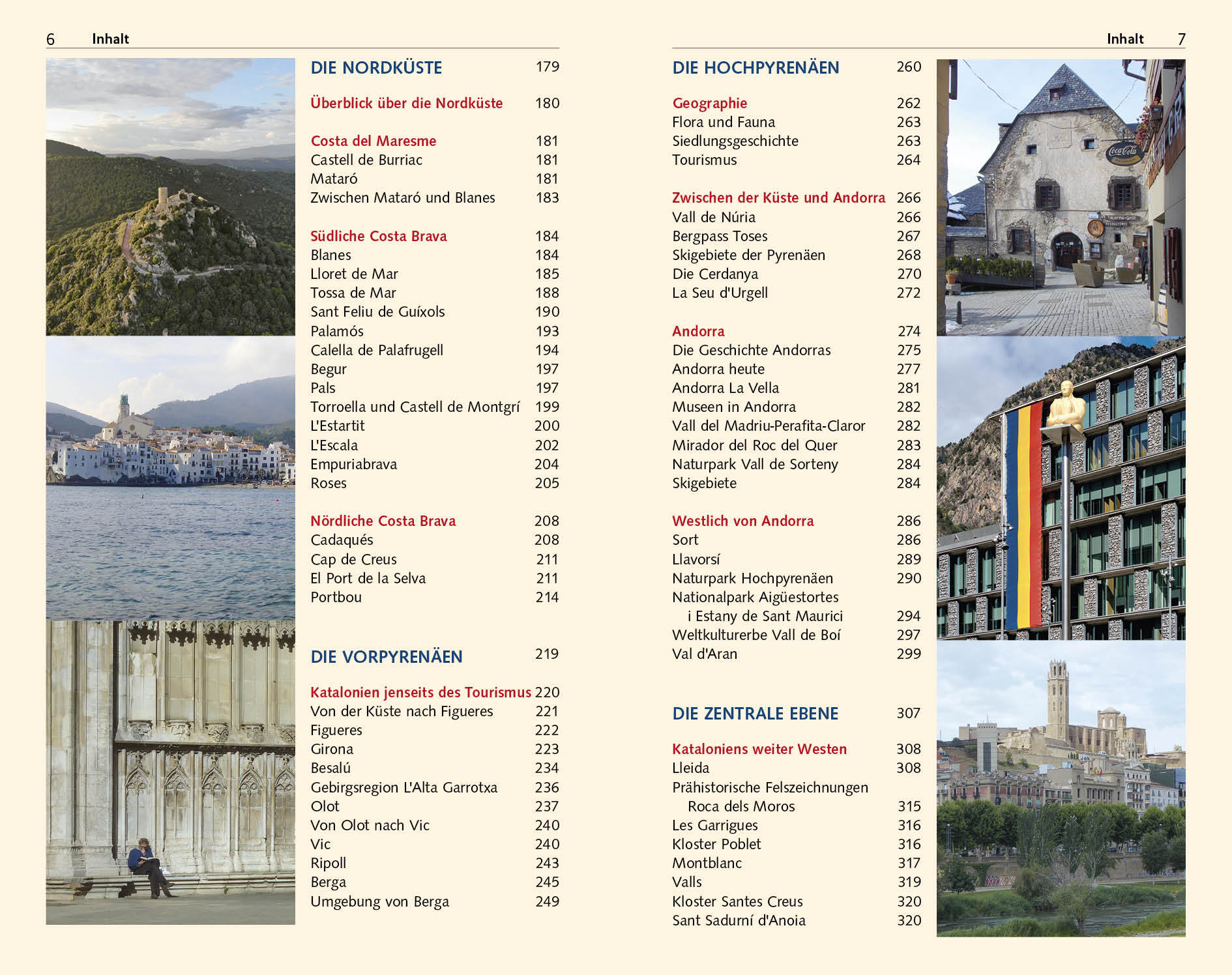 Seit Jahren gehört Barcelona zu den beliebtesten Städtereisezielen Europas und zieht alljährlich Millionen Besucher an. Wenig nördlich und südlich locken die türkisblauen Wasser des Mittelmeers an feinsandige Strände, teils umgeben von spektakulären Steilküsten. Doch in Katalonien gibt es abseits der populären Ziele noch eine Menge mehr zu entdecken. Beinahe jedes Interesse wird bedient. Auf einer Fläche kleiner als Nordrhein-Westfalen verteilt sich eine Vielzahl sehr unterschiedlicher Landschaften. Im Norden ragen die Gipfel der Pyrenäen bis über 3000 Meter in den Himmel und garantieren Wanderern und Skiläufern großartige Naturerlebnisse. Daneben werden die dicht bewaldeten Mittelgebirge meist übersehen. Auch sie sind geprägt von senkrechten Felswänden und wilden Bergbächen, in denen man sommers unbefangen baden kann. Tief im Süden hat der Fluss Ebre eine fast einzigartige Deltalandschaft geformt, in der traditionell Reis angebaut wird. Die ungeheure landschaftliche Vielfalt auf kleinstem Raum verspricht zahlreiche Gelegenheiten aktiver Urlaubsgestaltung. Radfahren, Tauchen, Surfen, Rafting, Fallschirmspringen, Ballonfahren, Canyoning in Katalonien kann man alles ausprobieren. Das Angebot für Kulturinteressierte steht der natürlichen Mannigfaltigkeit in nichts nach. Mindestens 10000 Jahre der Menschheitsgeschichte haben in Katalonien ihre Spuren hinterlassen, von steinzeitlichen Höhlenmalern über das frühzeitliche Volk der Iberer zu Griechen, Römern, Arabern und Germanen. Bauwerke verschiedenster Epochen gehören zum Weltkulturerbe der UNESCO. Ursprüngliche mittelalterliche Dörfer finden sich in allen Regionen und bieten reizvolle Fotomotive. In Barcelona kann man Wochen damit verbringen, Museen, Galerien, Theater und Konzerthallen zu erkunden. Zu bestaunen ist das Werk weltberühmter einheimischer Künstler wie Antoni Gaudí, Pablo Picasso, Joan Miró und Salvador Dalí. Die Katalanen schaffen den Spagat zwischen Tradition und Moderne. Mental stärker an Mitteleuropa als am Mittelmeer orientiert, hält das feier- und kommunikationsfreudige Volk uralte Bräuche am Leben und begeistert auch die Jugend. Die Ausgelassenheit lokaler Feste ist gerade in kleinen Städten besonders erlebenswert, wenn Sardanes getanzt werden, die Riesenfiguren »gegants« durch die Straßen ziehen und die faszinierenden Menschentürme »castells« gebaut werden. Zu jedem Fest gehört spektakuläres Feuerwerk. In Berga wurden die lokalen Feierlichkeiten gar zum Weltkulturerbe der Menschheit erklärt. Und schließlich ist da noch die katalanische Küche, die dank der Vielfalt der Klimazonen eine ungeheure Bandbreite von Zutaten und eine Menge Überraschungen bereithält. Nach dem gescheiterten Referendum zur Unabhängigkeit 2017 war Katalonien kurzfristig in aller Munde. Seitdem ist zwar keine Ruhe eingekehrt, aber in die Nachrichten gelangt der jahrhundertealte Konflikt nur bei spektakulären Ereignissen. Was hinter all dem steckt, kann man bei einer Reise durch das kleine Land erleben und sich eine eigene, vielleicht ganz neue Meinung bilden. Sicher ist, die katalanische Widerspenstigkeit hat einen einzigartigen Kulturraum erhalten und bislang vor der globalen Einebnung bewahren können.