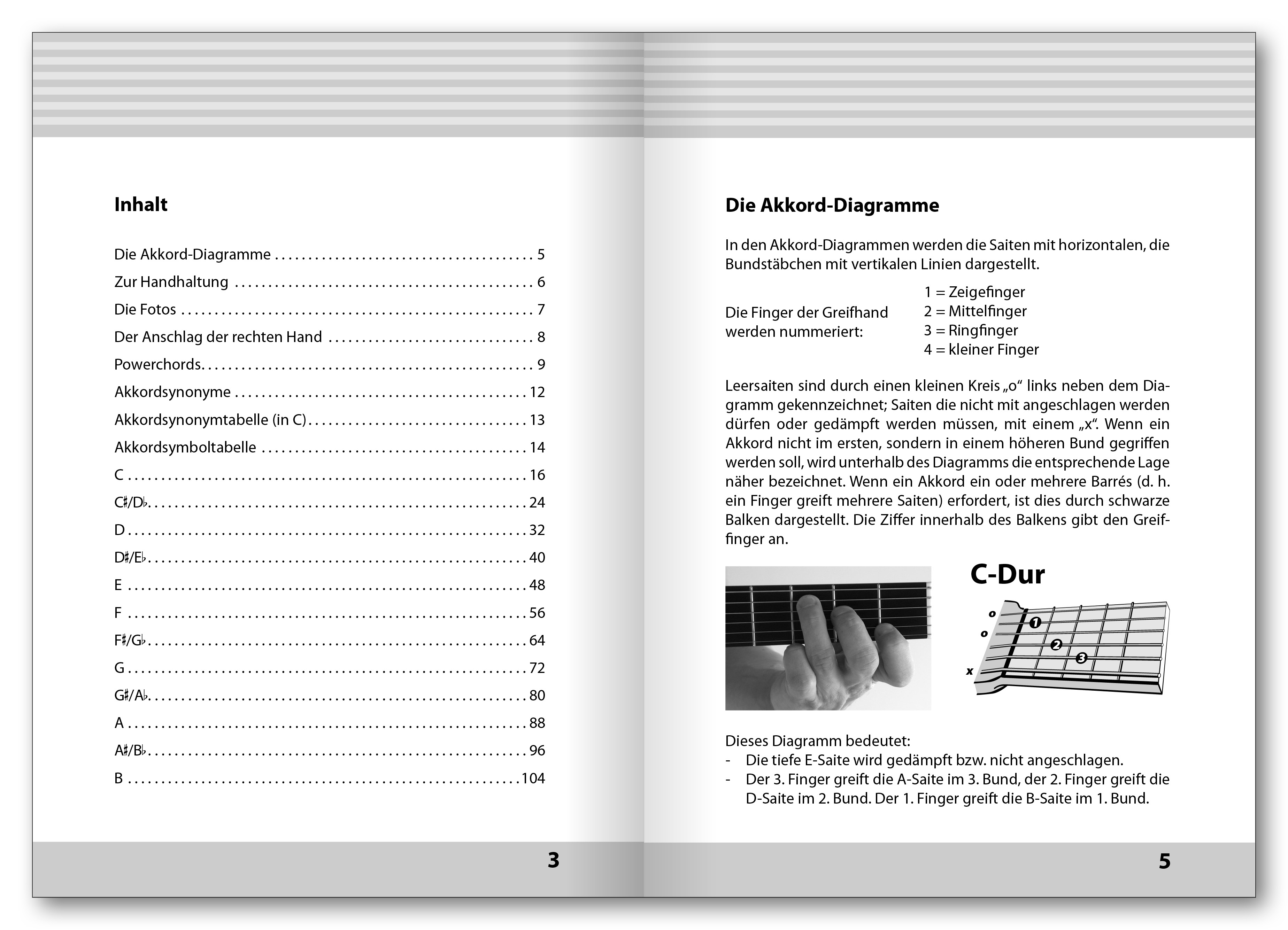 Die wichtigsten Gitarren-Akkorde in übersichtlichen Diagrammen. Nach Grundtönen geordnet und mit einem erklärenden Haltungsfoto zu jedem Akkord so wird der Einstieg auch für Anfänger leicht! Kapitel über Powerchords, Akkordsynonyme, eine Akkordskalentabelle un...