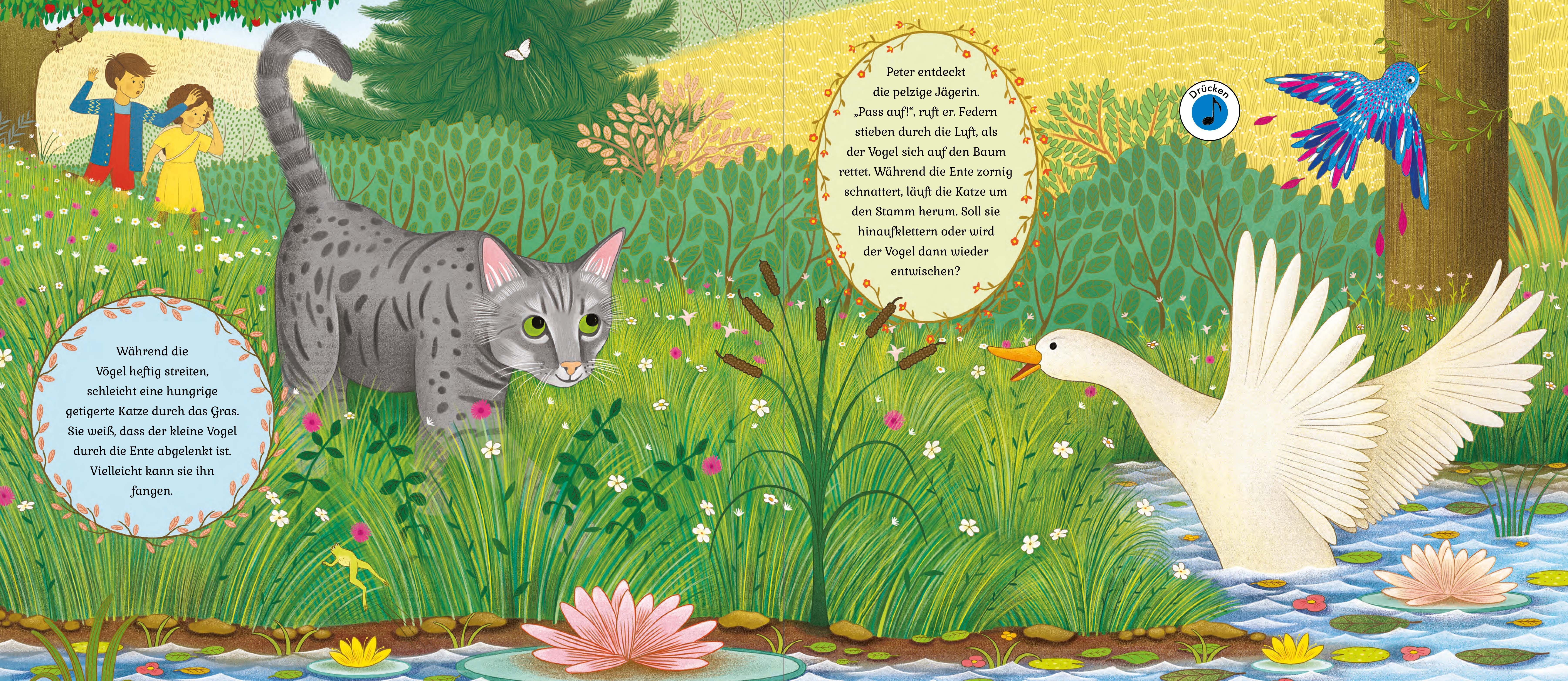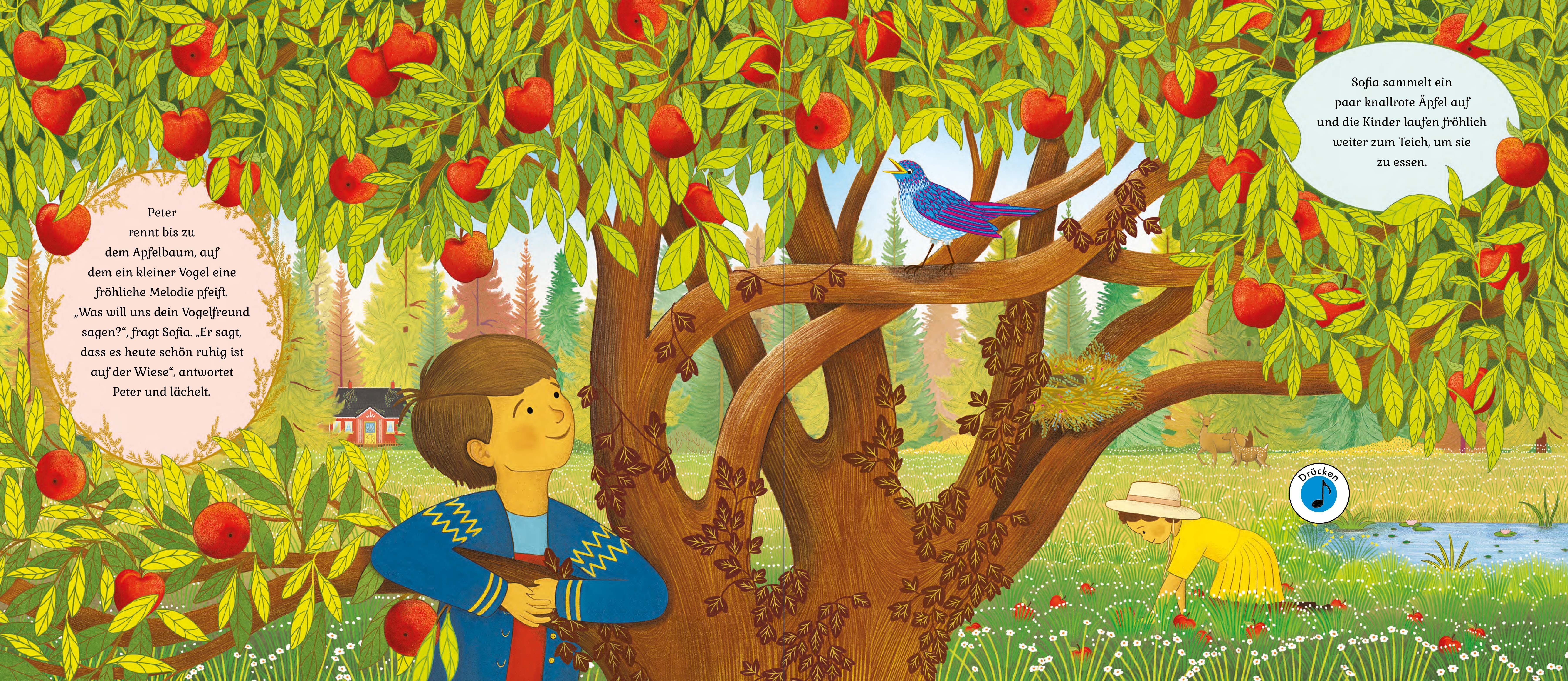 Eines der beliebtesten Musikstücke als Musik-Bilderbuch! Lerne das weltberühmte Märchen von Peter und dem Wolf kennen und lass dich verzaubern von der wunderbaren Musik ! Folge Peter und Sofia auf ihrem Weg in den gefährlichen Wald und triff mit ihnen die Katz...