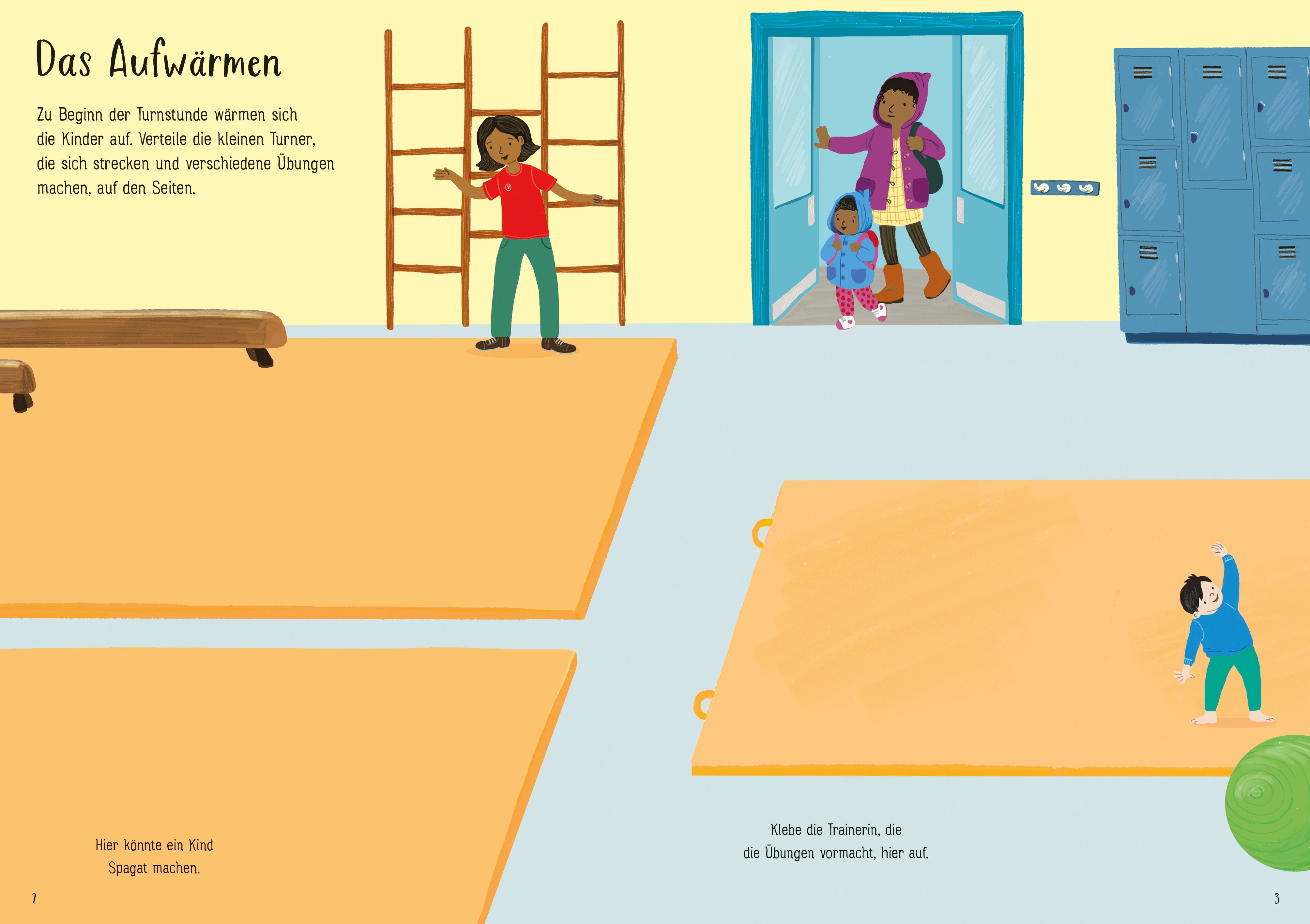 Gestalte die kunterbunten Turnszenen mit über 150 wiederablösbaren Stickern. Lass die Kinder Handstand und Spagat machen, auf dem Trampolin springen, mit bunten Bändern turnen und an spannenden Wettbewerben teilnehmen gestalte die kunterbunten Szenen mit über...