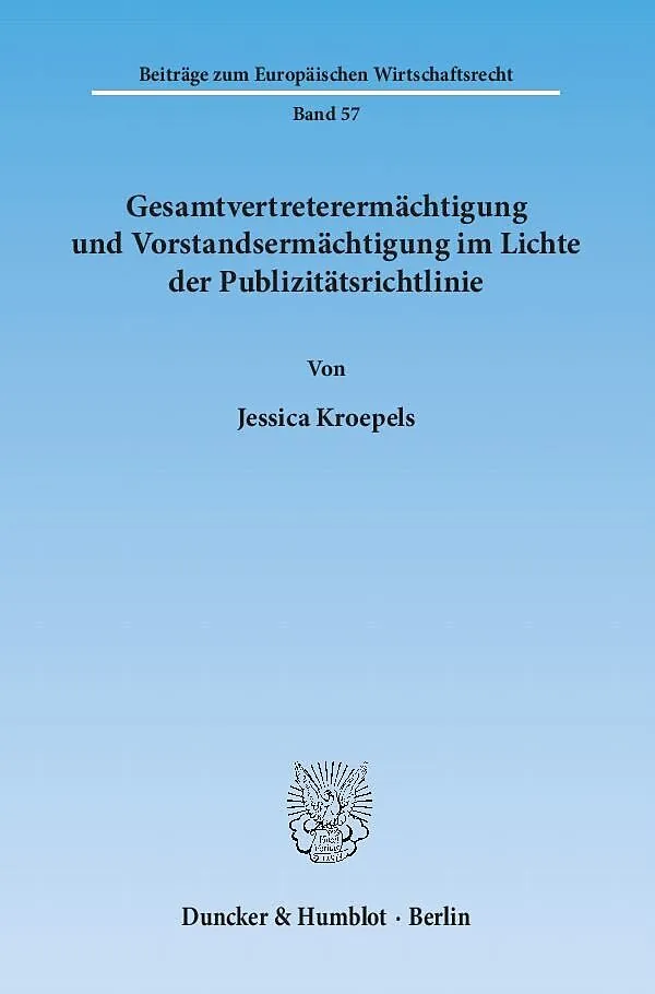 Als der Inhalt der Publizitätsrichtlinie in den europäischen Rechtsetzungsgremien beraten wurde, prallten unterschiedliche Verständnisse vom Umfang der Vertretungsmacht in Kapitalgesellschaften aufeinander. In der Publizitätsrichtlinie wurde schließlich das Pr...