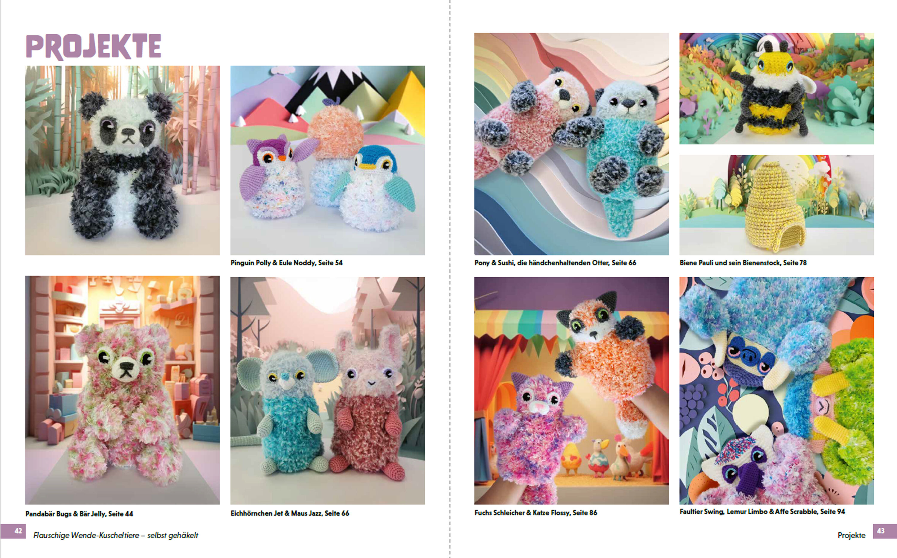 Dieses Buch behandelt ein einzigartiges Thema: aus Flauschgarn gehäkelte Kuscheltiere, die noch dazu ein verstecktes Innenleben haben. Wendet man sie von innen nach außen, taucht plötzlich ein neues Kuscheltier auf. So wird aus einem Panda ein rosa Bärchen ode...