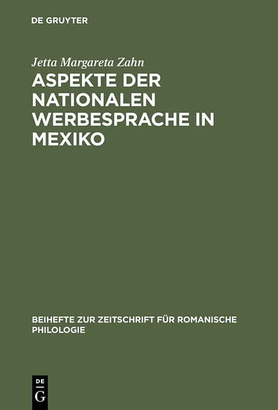 Keine ausführliche Beschreibung für "Aspekte der nationalen Werbesprache in Mexiko" verfügbar. Klappentext Die im Jahre 1905 von Gustav Gröber ins Leben gerufene Reihe der Beihefte zur Zeitschrift für romanische Philologie zählt zu den renommierteste...