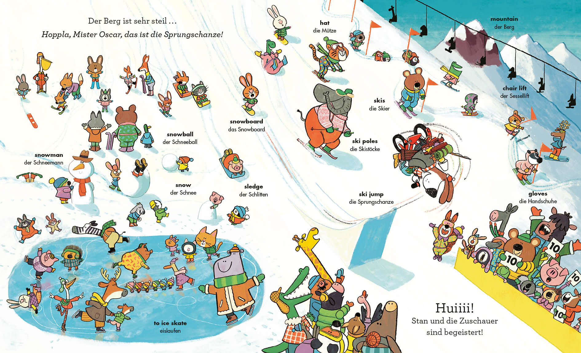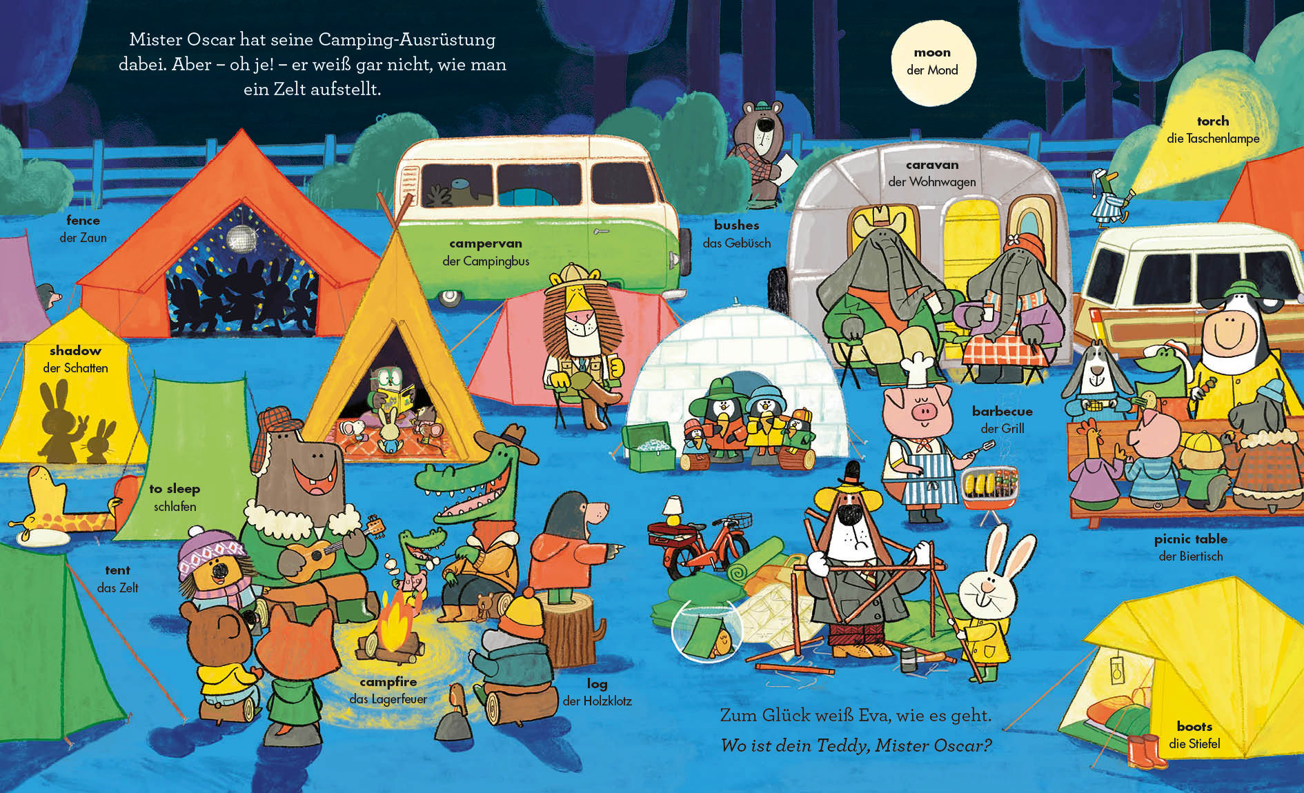 Mit Wimmelbildern Englisch lernen Mister Oscar und sein Goldfisch Chips gehen auf die Reise! In der großen Stadt, beim Campen, Segeln, in den Bergen oder am Strand treffen sie viele Freunde und erleben lustige Abenteuer. In den zauberhaften Wimmelbildern gibt ...