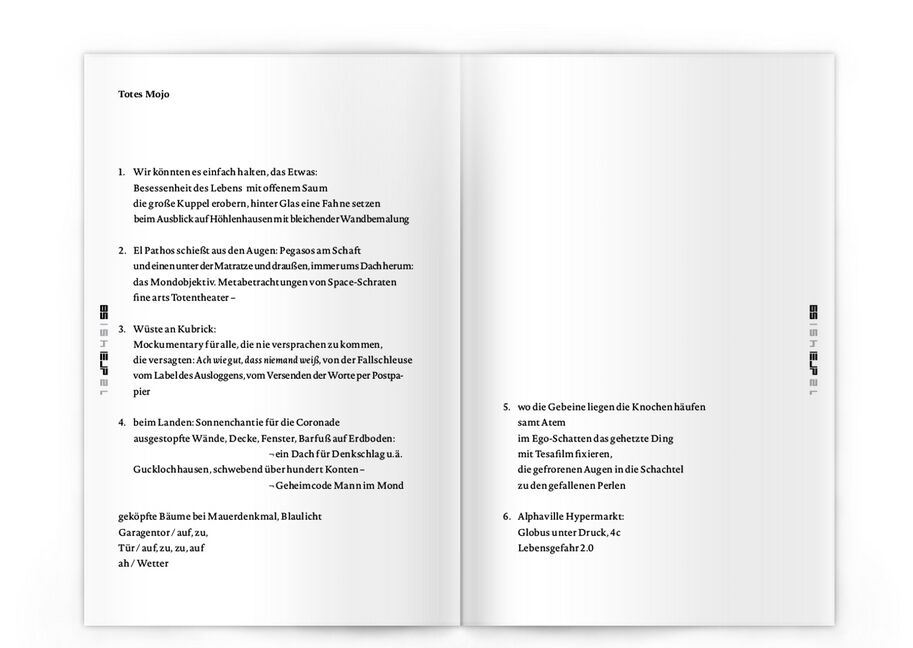 Was es ist, wenn es ist, was es scheint und ob es erkennbar ist in diesem Bannkreis ohne befassbare Mechanik aus uns/für uns sprechend sollen wir Gräber oder Tempel graben oder aufrichten, oder einander die Horizontale vorschlagen, um der Vernichtung Herr zu w...